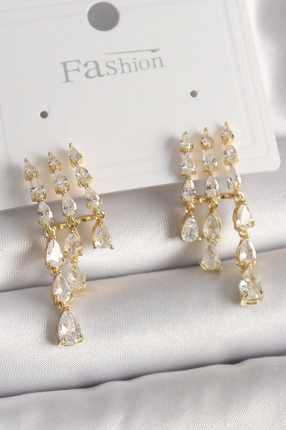 Pirinç Gold Renk Zirkon Taşlı Yağmur Model Kadın Küpe