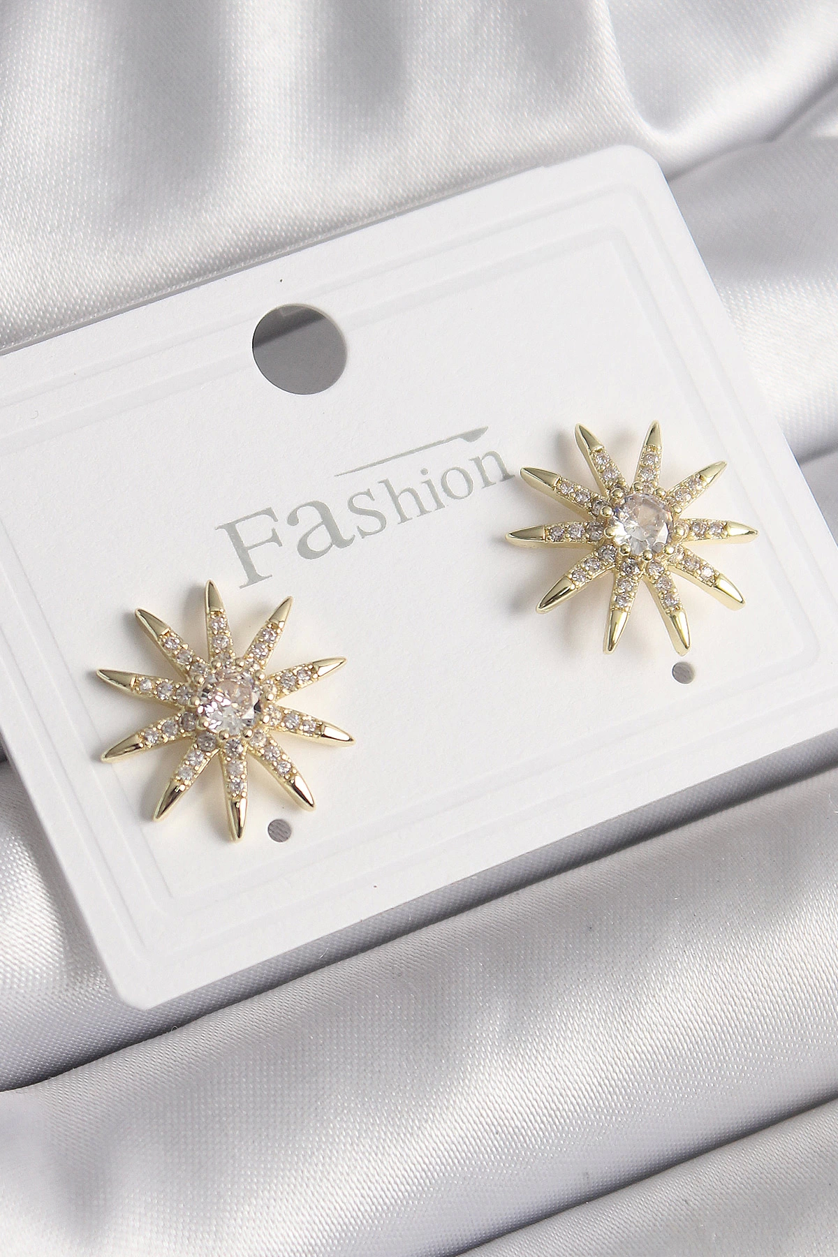 Pirinç Gold Renk Zirkon Taşlı Yıdız Model Kadın Küpe