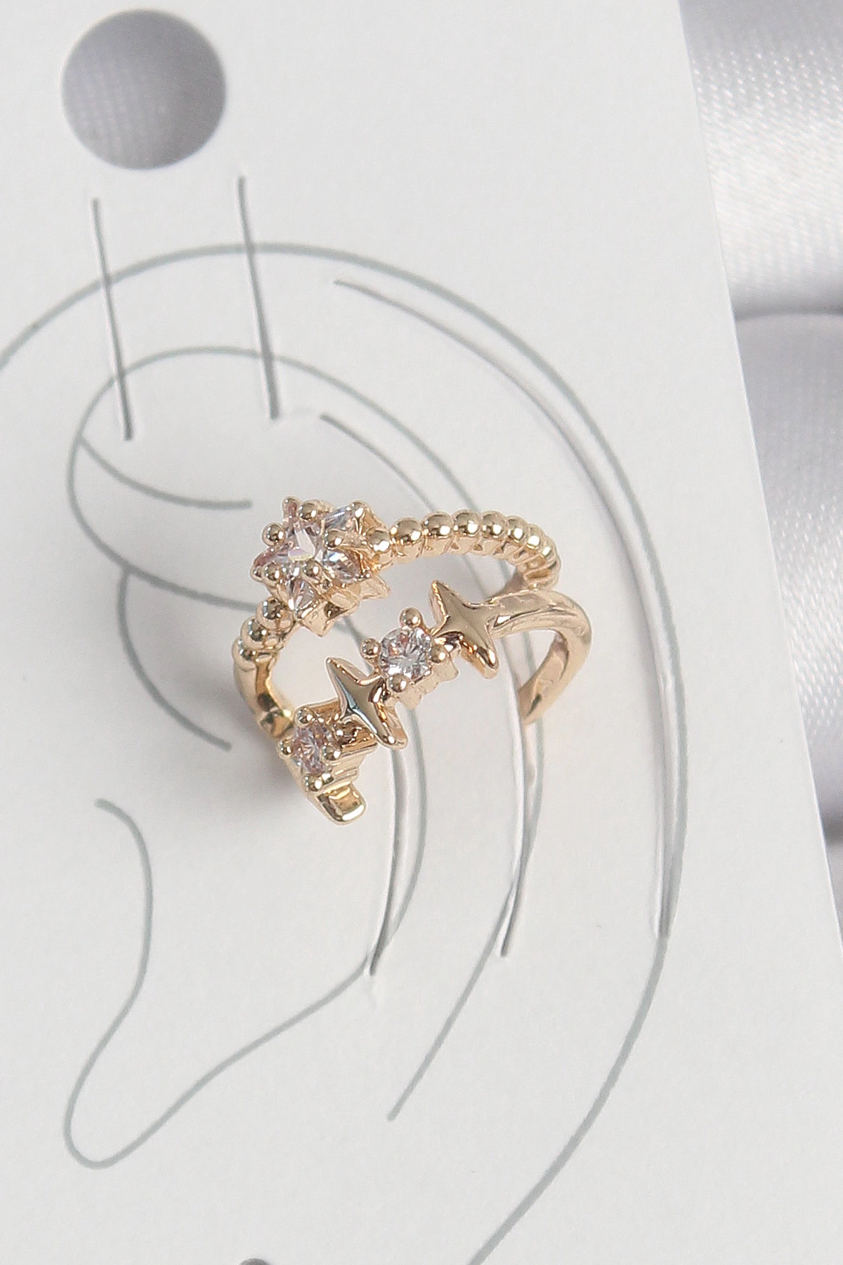 Pirinç Gold Renk Zirkon Taşlı Yıldız Model Kadın Kıkırdak Küpe