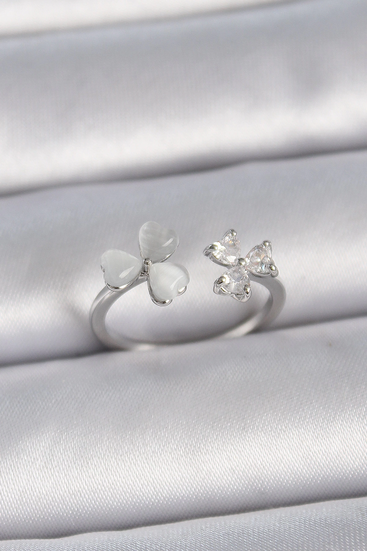 Pirinç Gümüş Renk Ayarlanabilir Zirkon Taşlı Beyaz Mineli Kalp Model Kadın Yüzük