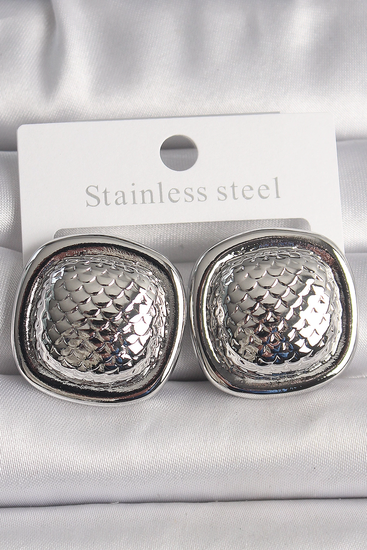 Pirinç Gümüş Renk İşlemeli Kare Model Kadın Küpe