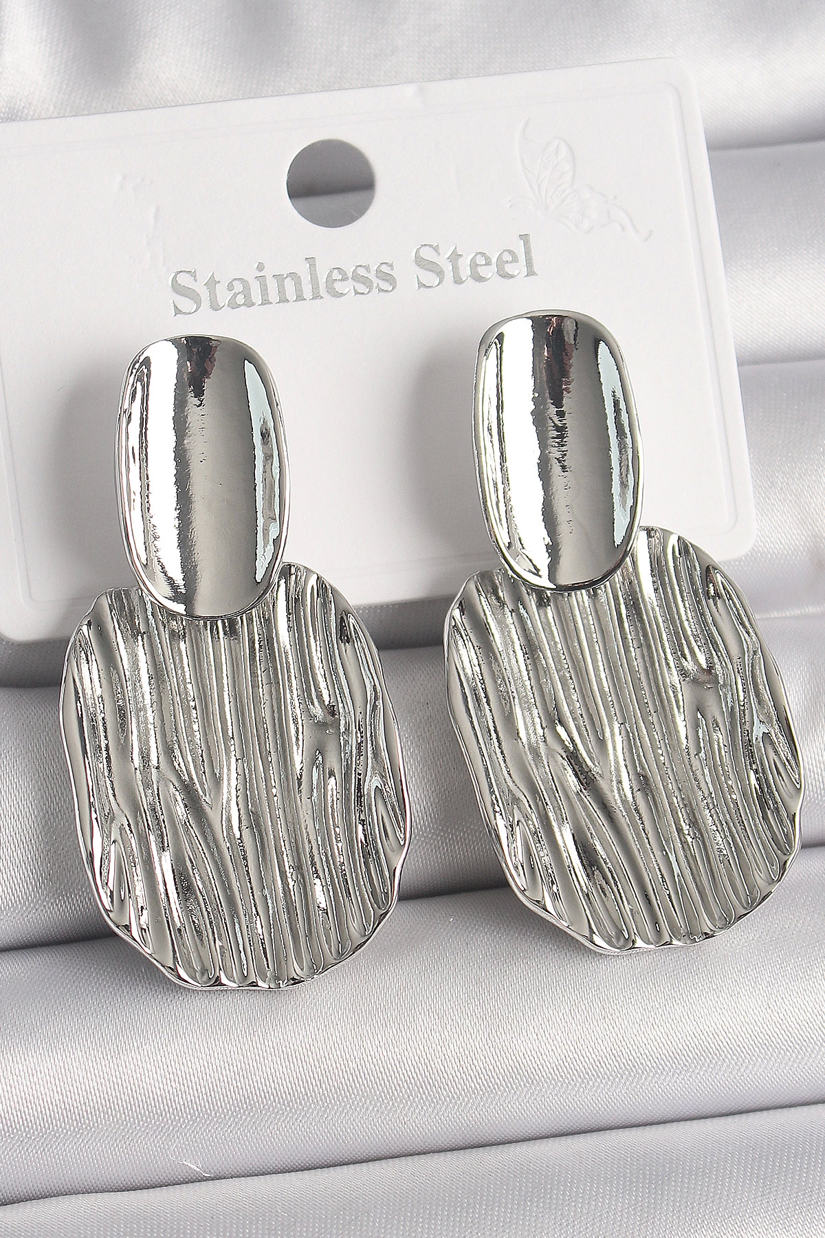Pirinç Gümüş Renk İşlemeli Kare Plaka Model Kadın Küpe
