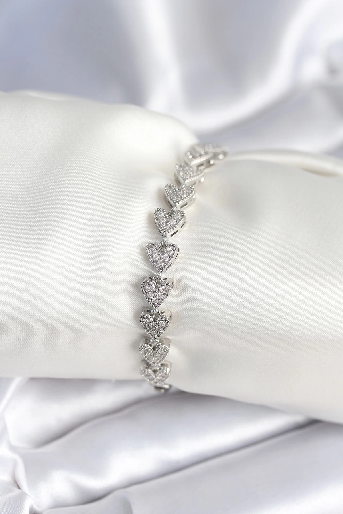 Pirinç Gümüş Renk Kalp Model Kadın Bileklik