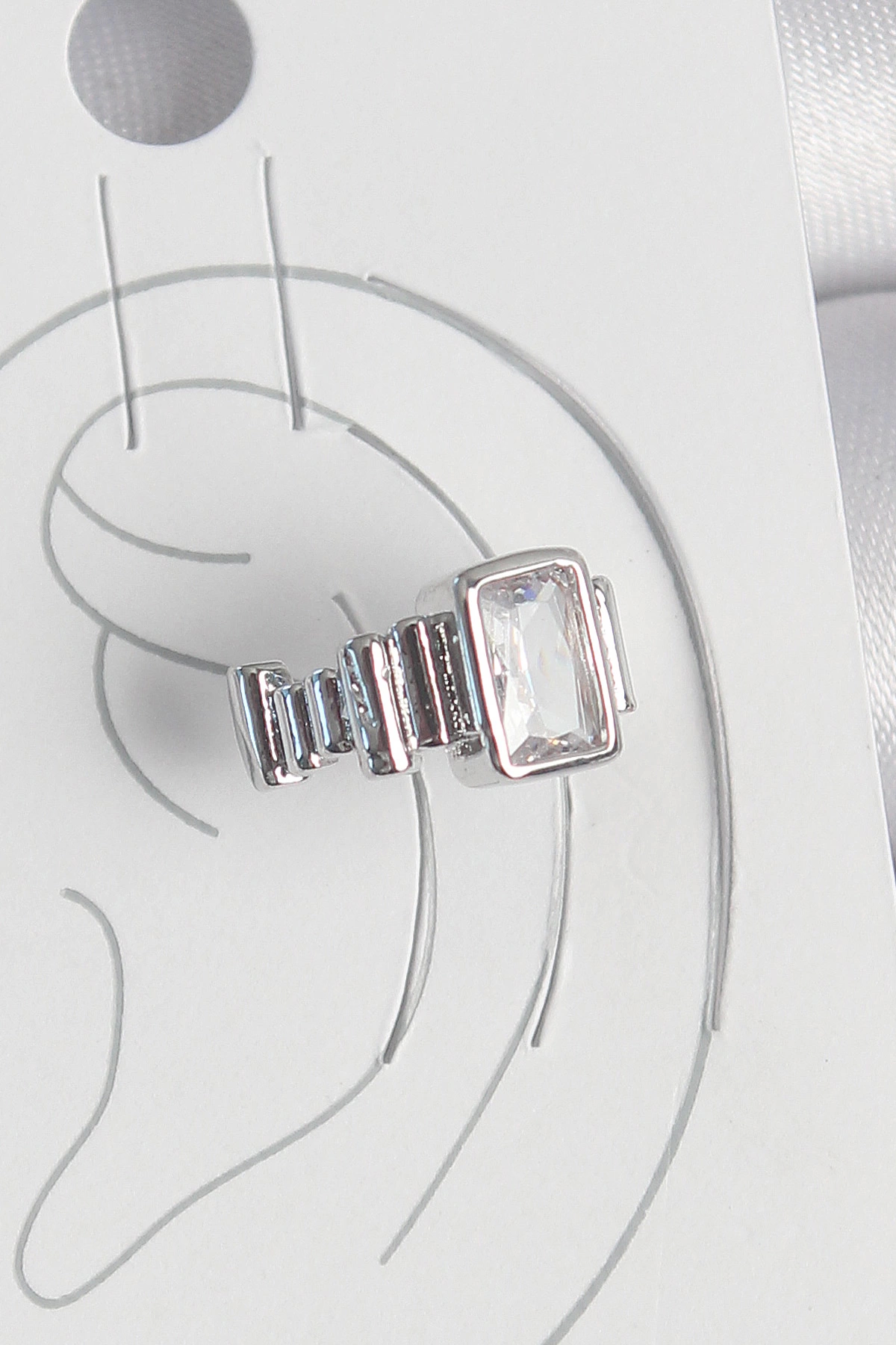 Pirinç Gümüş Renk Kare Zirkon Taşlı Kadın Kıkırdak Model Küpe