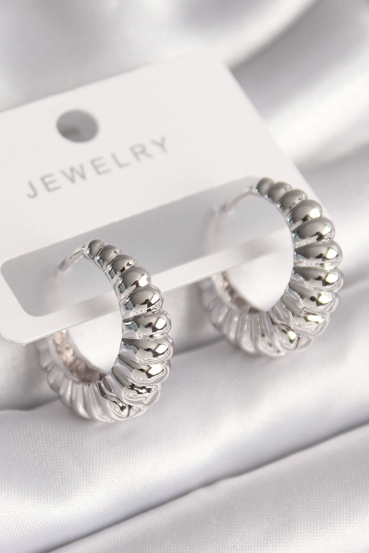 Pirinç Gümüş Renk Sarmal Halka Model Kadın Küpe
