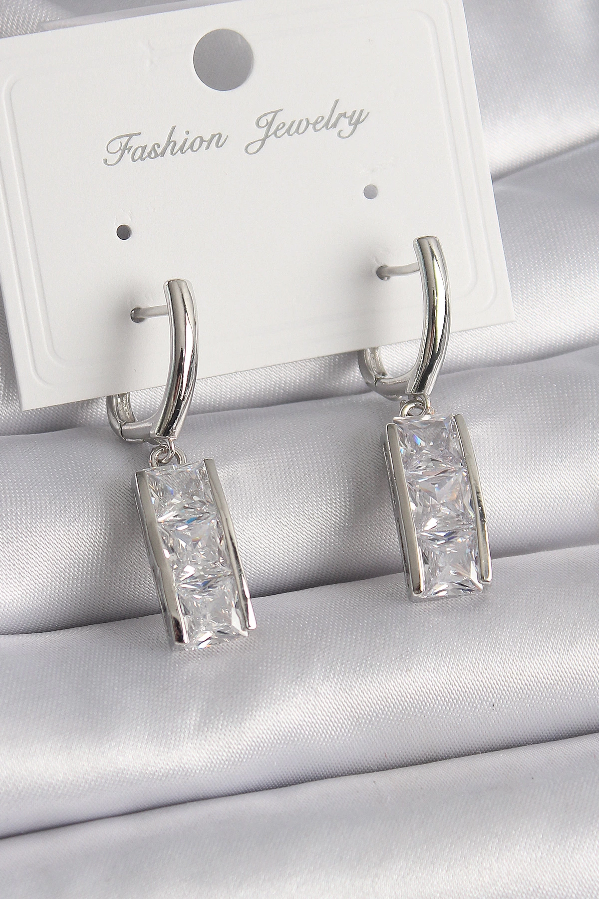 Pirinç Gümüş Renk Su Yolu Zirkon Taşlı Halka Model Kadın Küpe