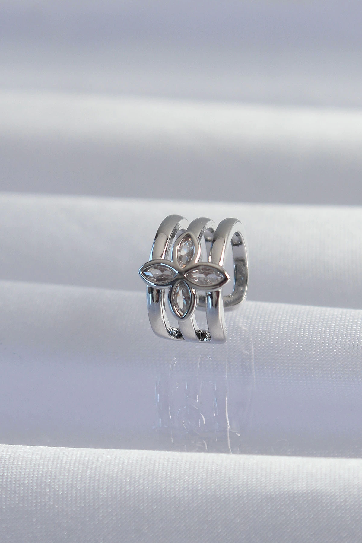 Pirinç Gümüş Renk Yonca Earcuff Küpe