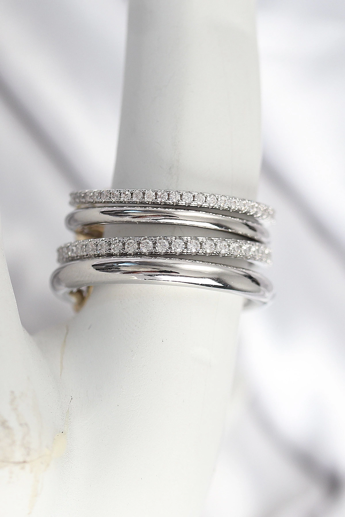 Pirinç Gümüş Renk Zirkon Taşlı 4'lü Kadın Yüzük