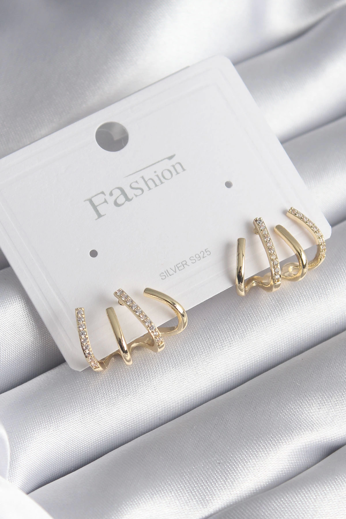 Pirinç Gümüş Renk Zirkon Taşlı Çatal Model Kadın Küpe