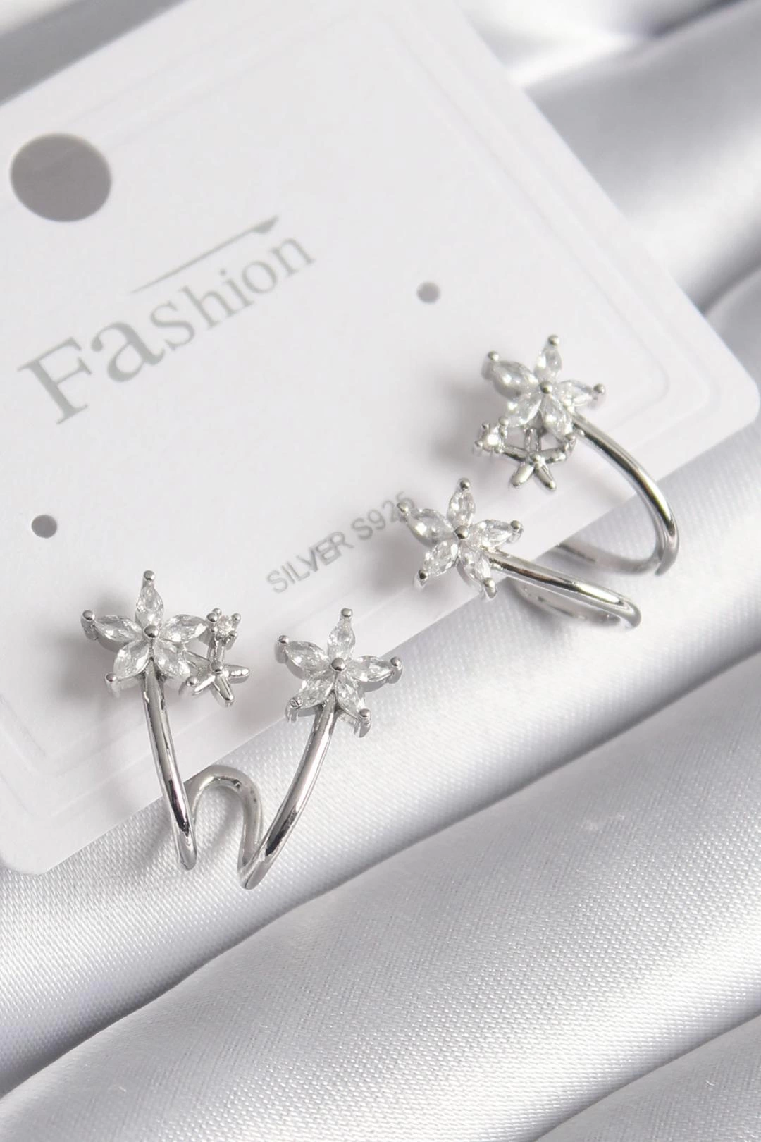 Pirinç Gümüş Renk Zirkon Taşlı Çiçek Model Kadın Küpe