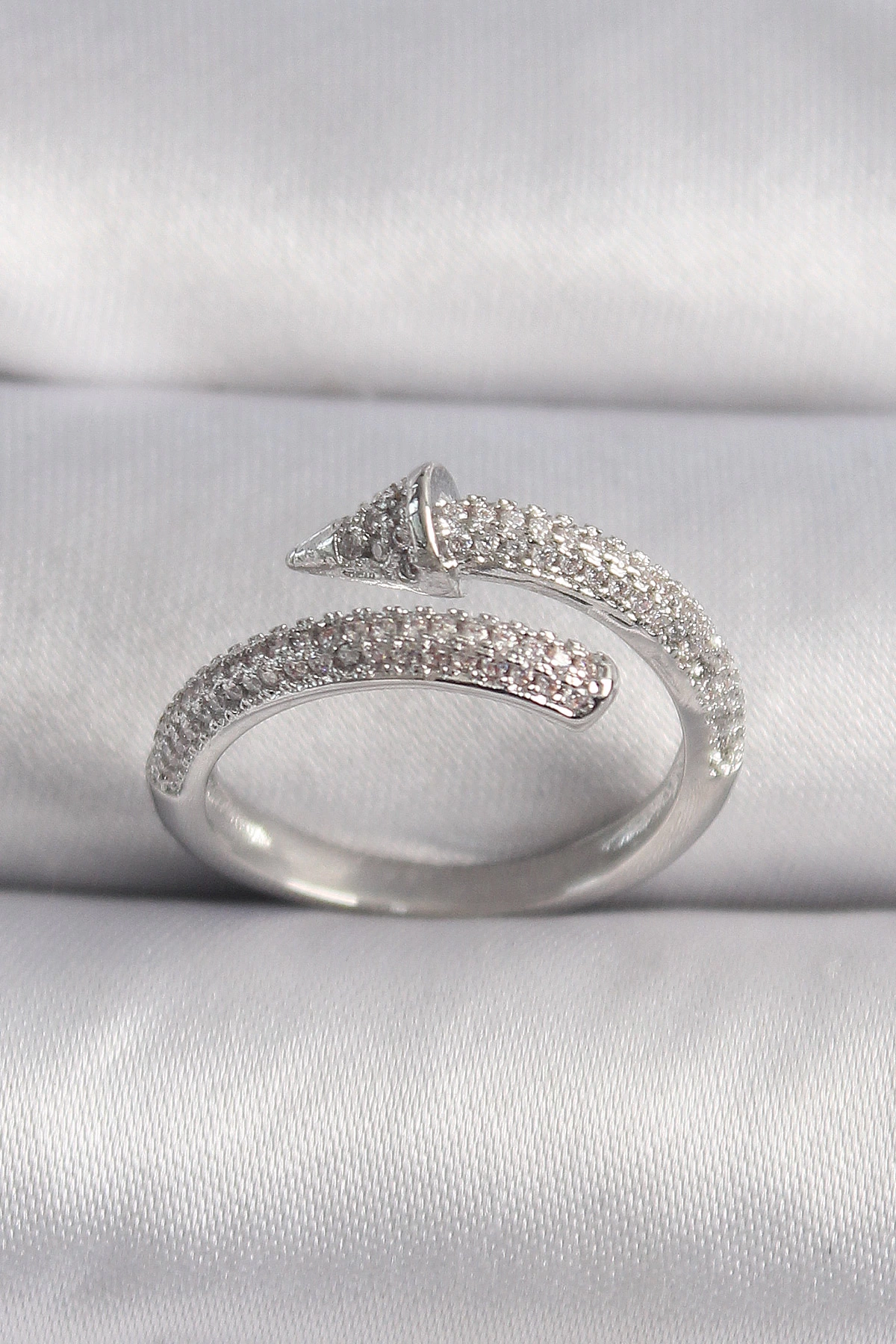 Pirinç Gümüş Renk Zirkon Taşlı Çivi Model Vıp Seri Kadın Yüzük