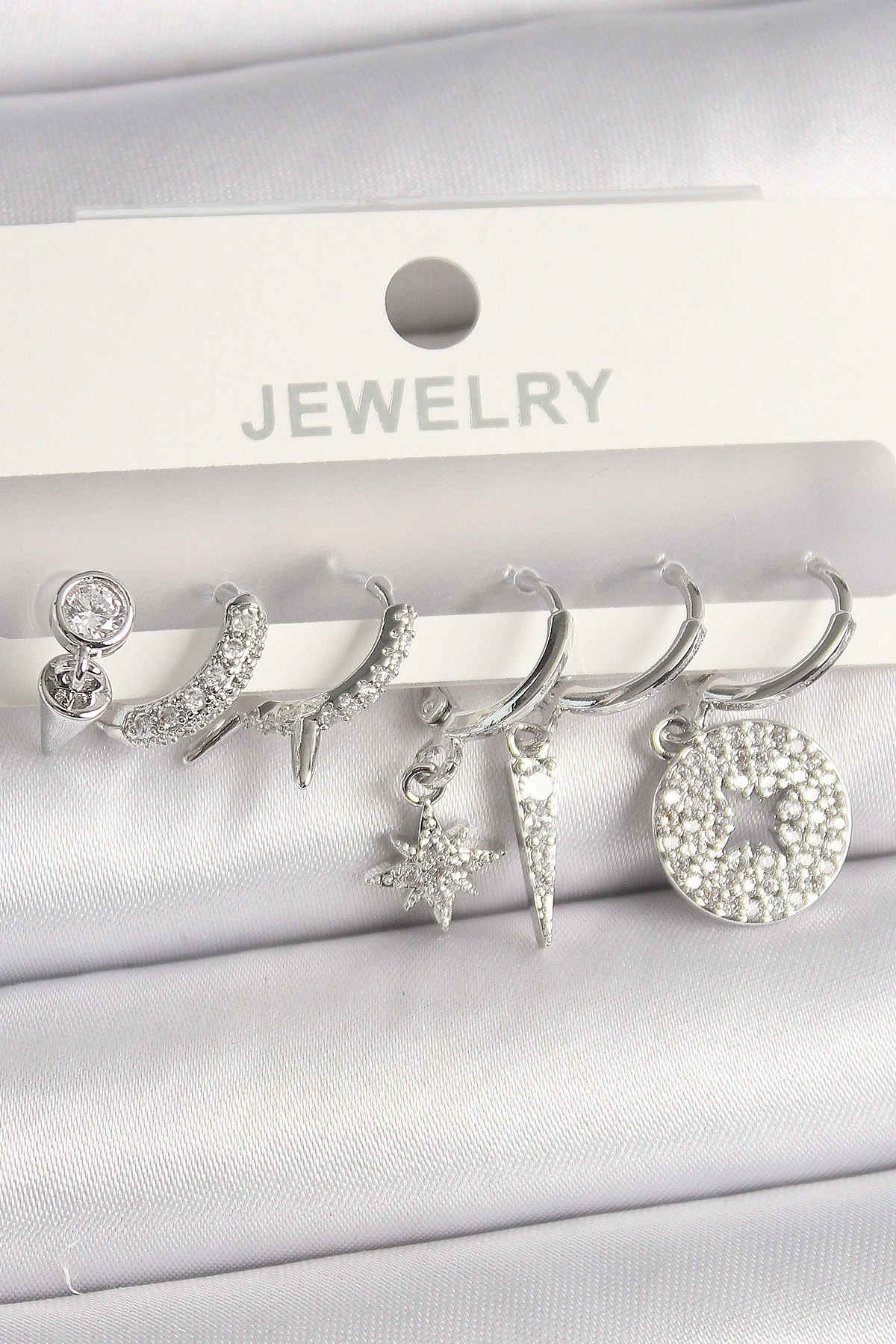 Pirinç Gümüş Renk Zirkon Taşlı Çoklu Figür Kadın Küpe Seti