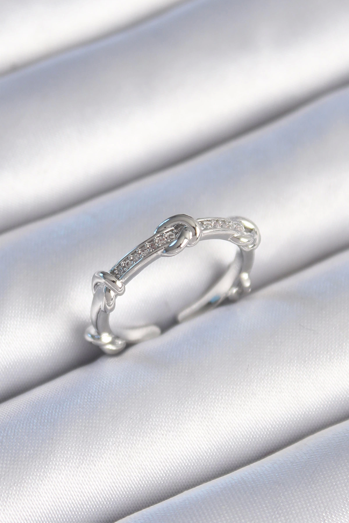 Pirinç Gümüş Renk Zirkon Taşlı Düğüm Model Kadın Yüzük