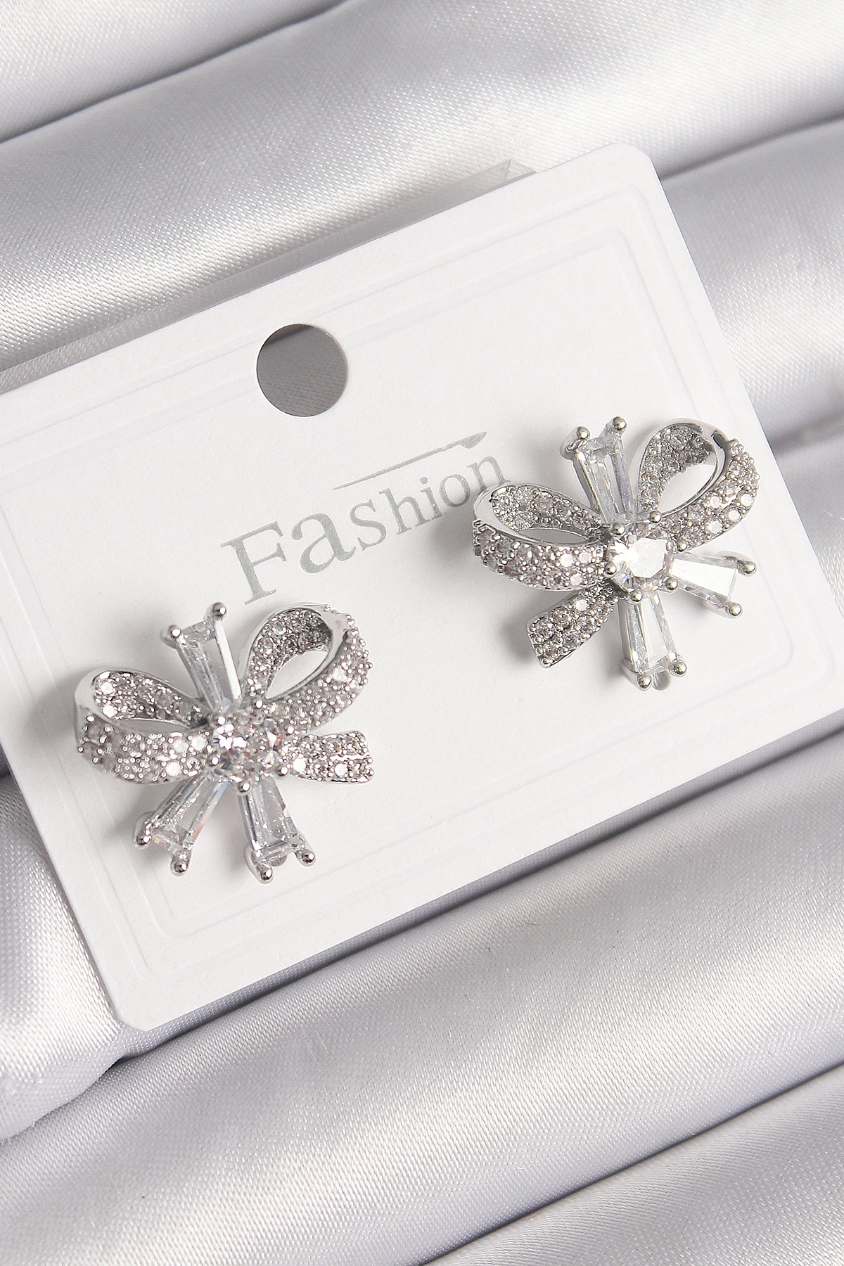 Pirinç Gümüş Renk Zirkon Taşlı Fiyonk Model Kadın Küpe
