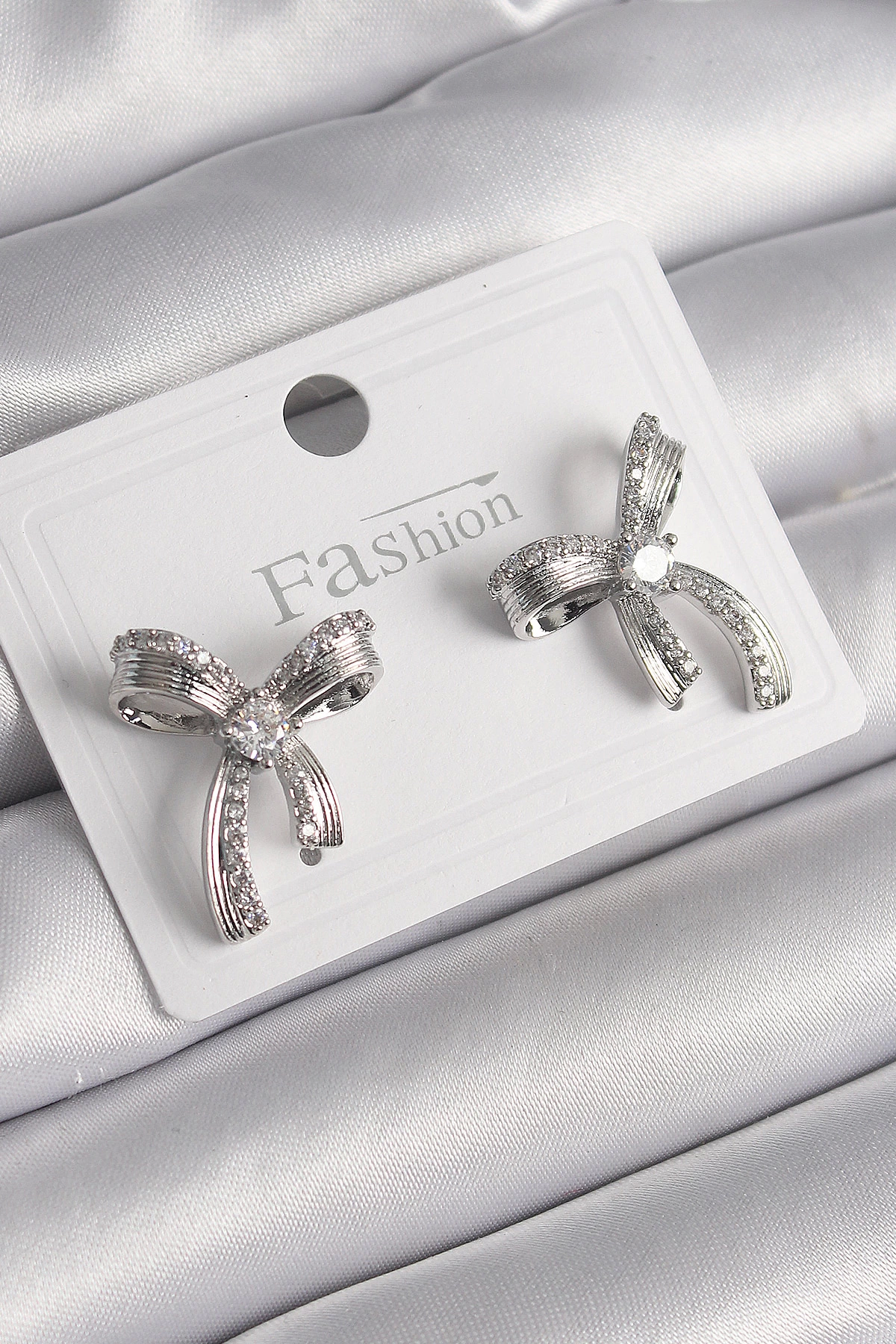 Pirinç Gümüş Renk Zirkon Taşlı Fiyonk Model Kadın Küpe