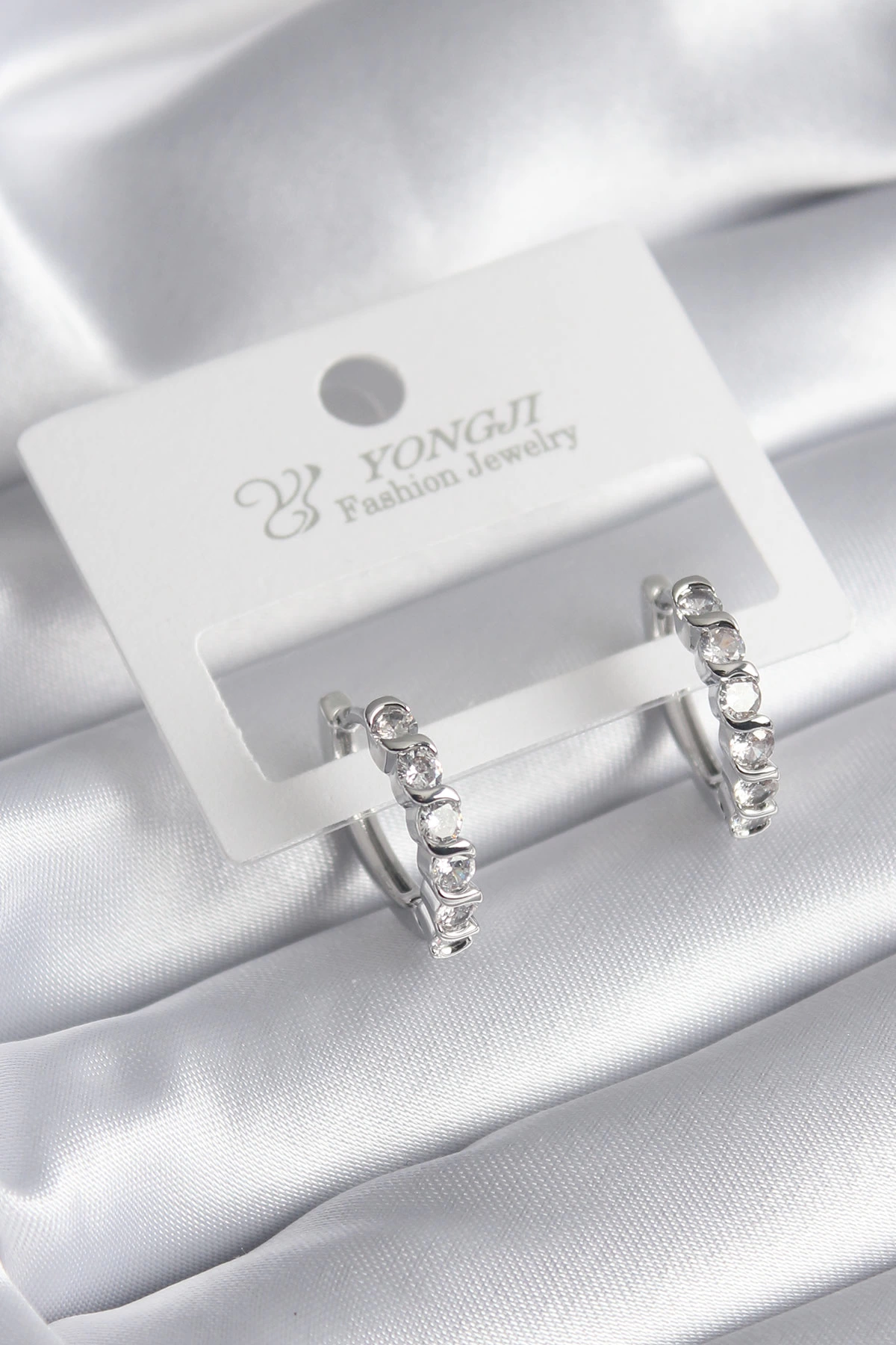 Pirinç Gümüş Renk Zirkon Taşlı Halka Model Kadın Küpe