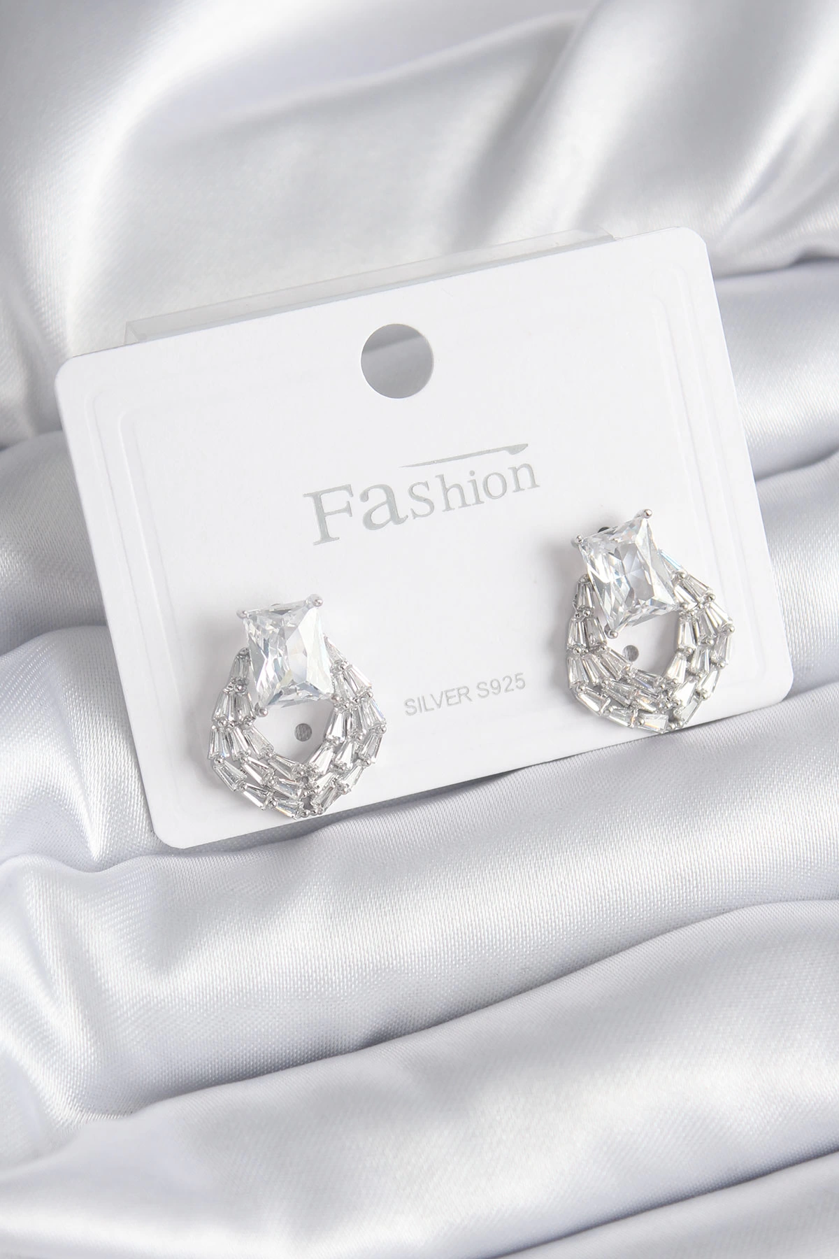 Pirinç Gümüş Renk Zirkon Taşlı Kadın Küpe