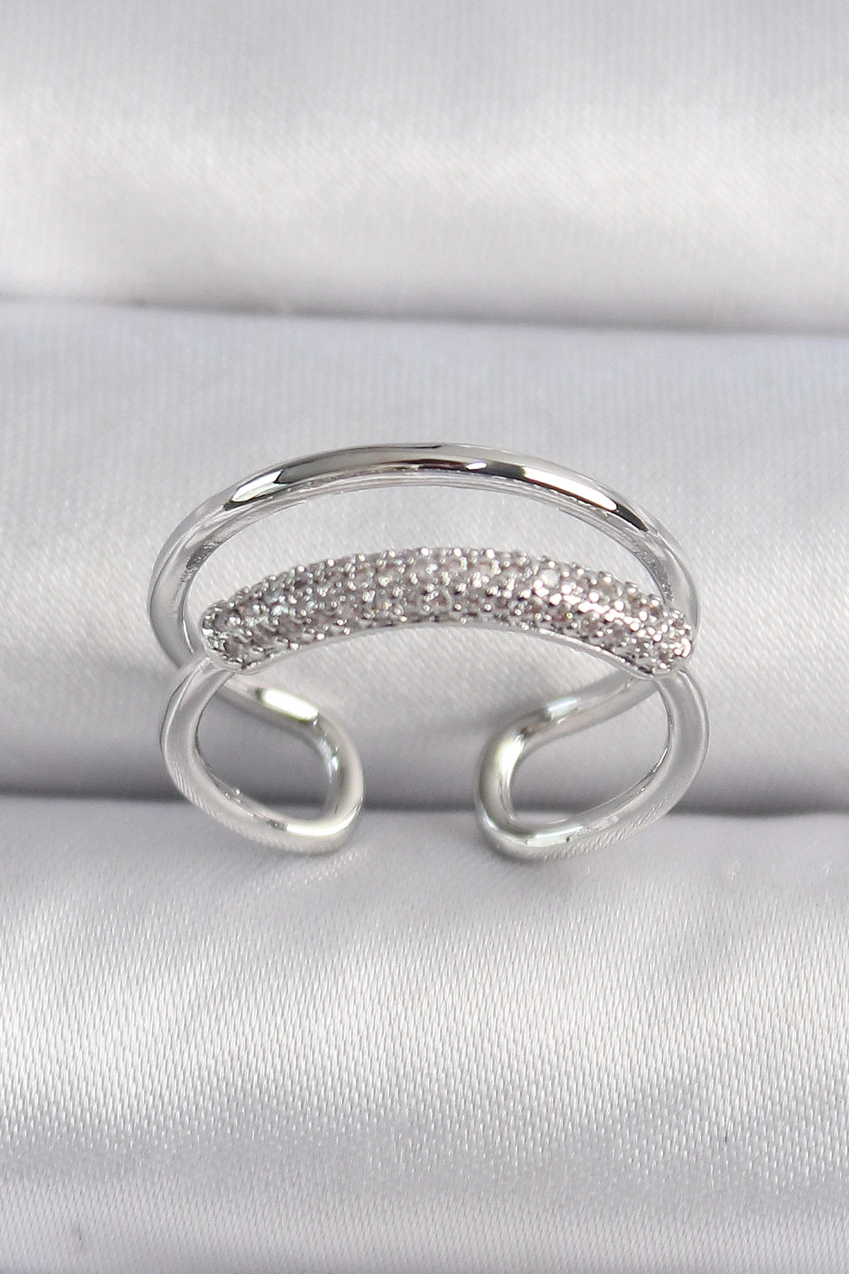 Pirinç Gümüş Renk Zirkon Taşlı Kadın Yüzük