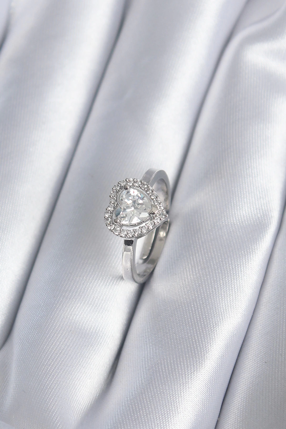 Pirinç Gümüş Renk Zirkon Taşlı Kalp Charm Model Kadın Yüzük