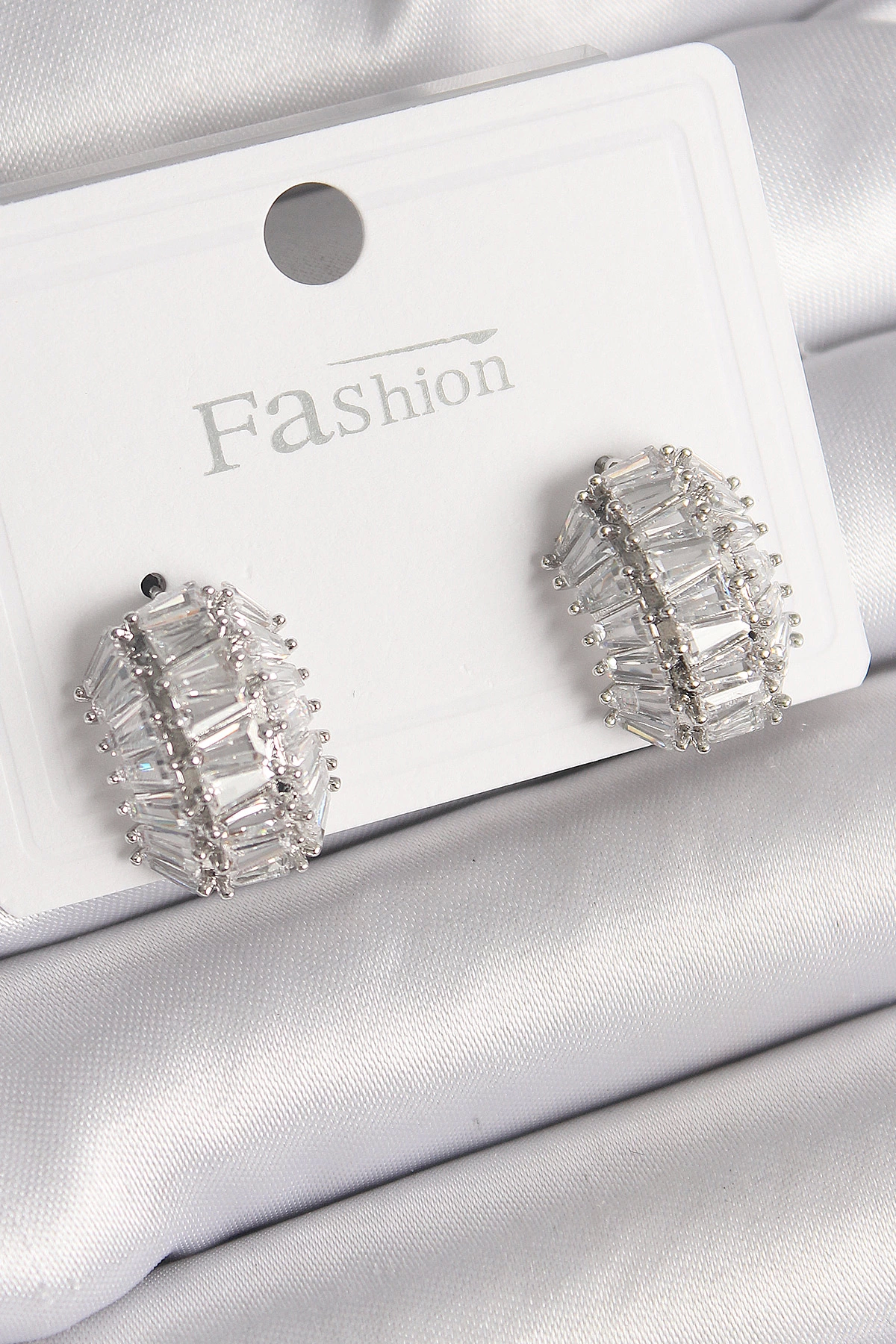 Pirinç Gümüş Renk Zirkon Taşlı Kaplumbağa Kabuğu Model Kadın Küpe