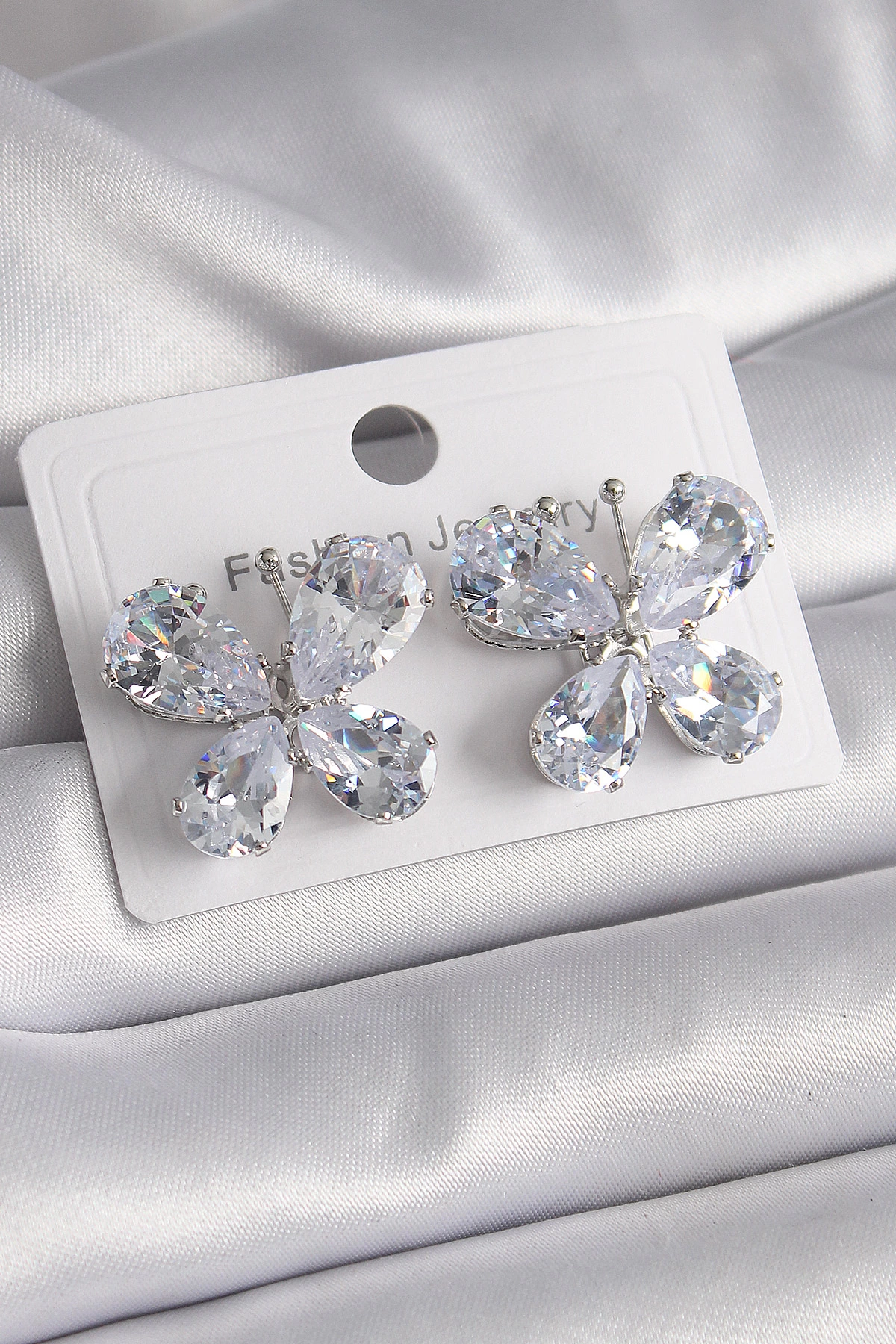 Pirinç Gümüş Renk Zirkon Taşlı Kelebek Model Kadın Küpe