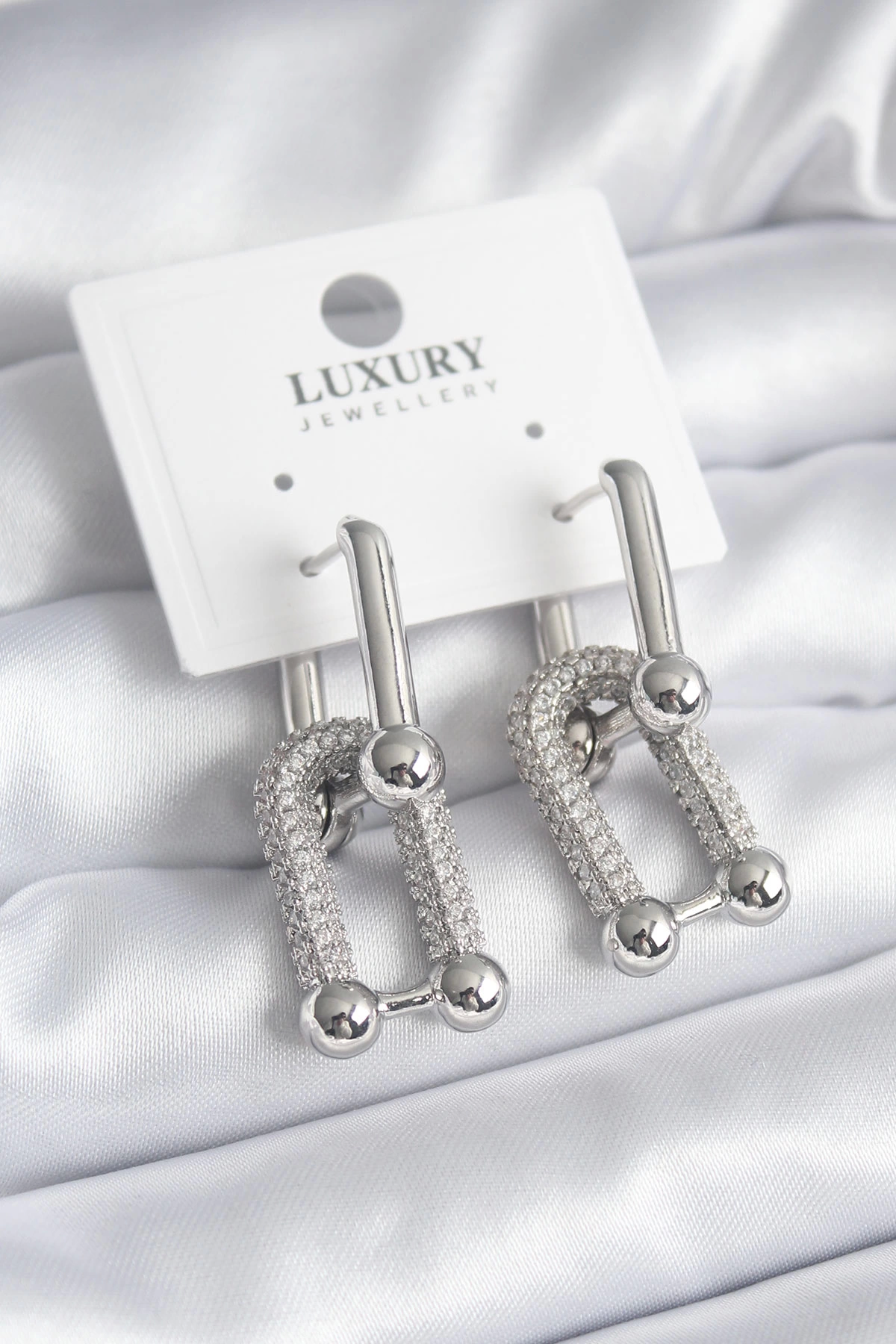 Pirinç Gümüş Renk Zirkon Taşlı Model Vıp Seri Kadın Küpe