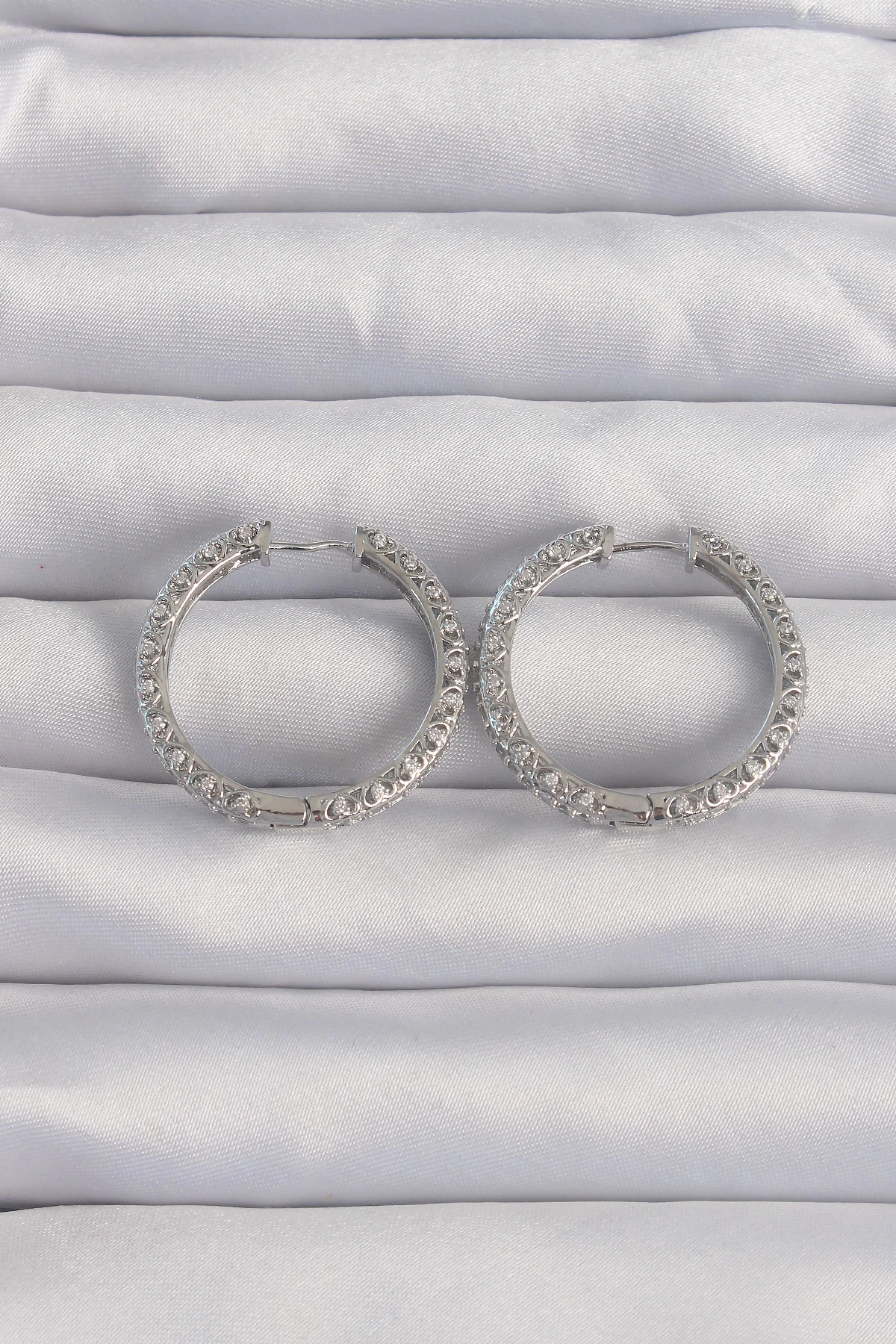 Pirinç Gümüş Renk Zirkon Taşlı Motifli Halka Küpe