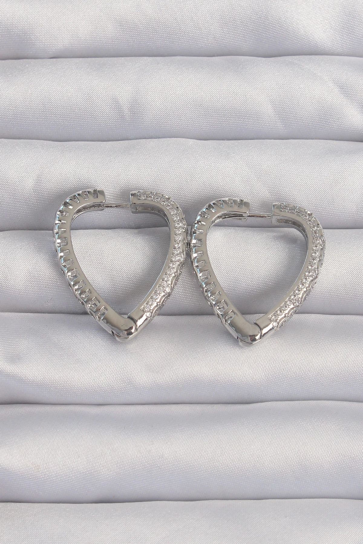Pirinç Gümüş Renk Zirkon Taşlı Motifli Kalp Küpe