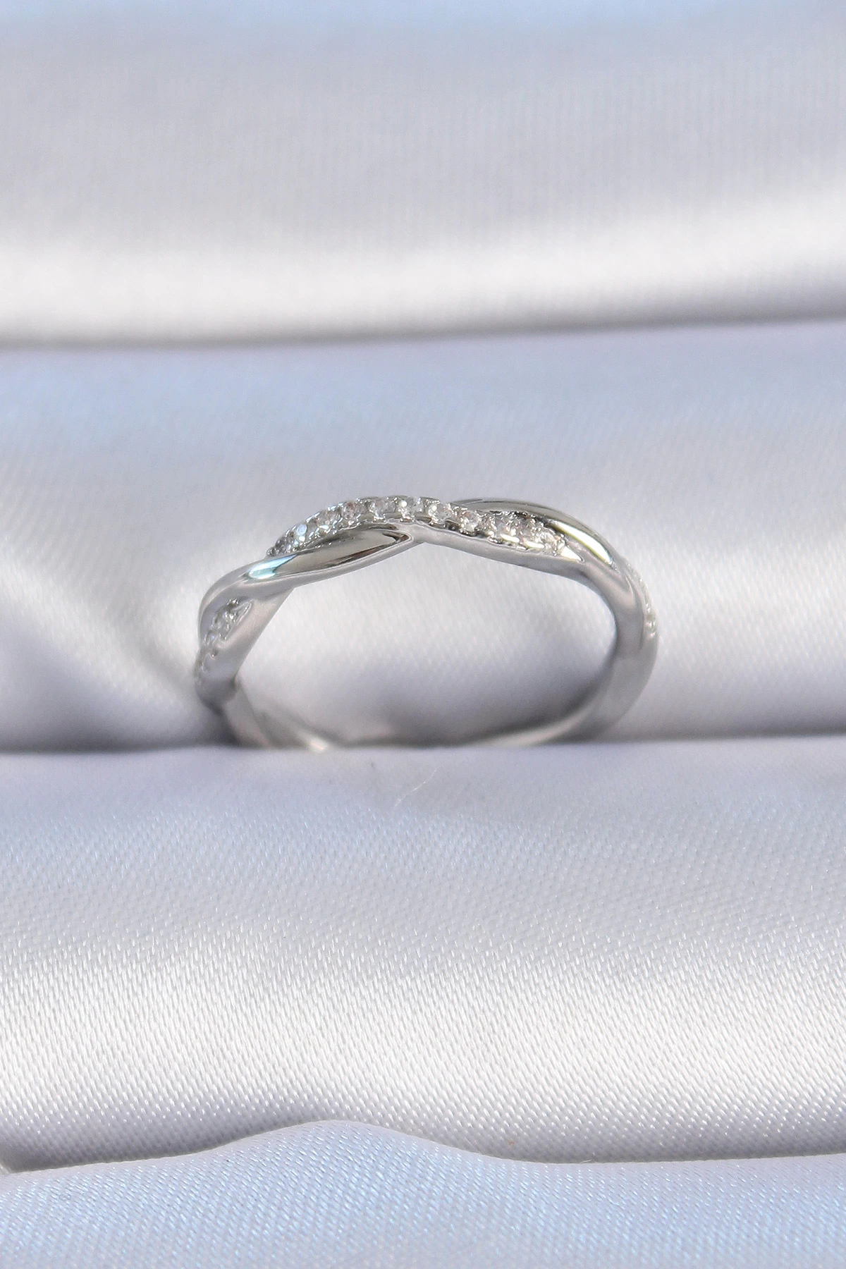 Pirinç Gümüş Renk Zirkon Taşlı Sarmal Model Kadın Yüzük