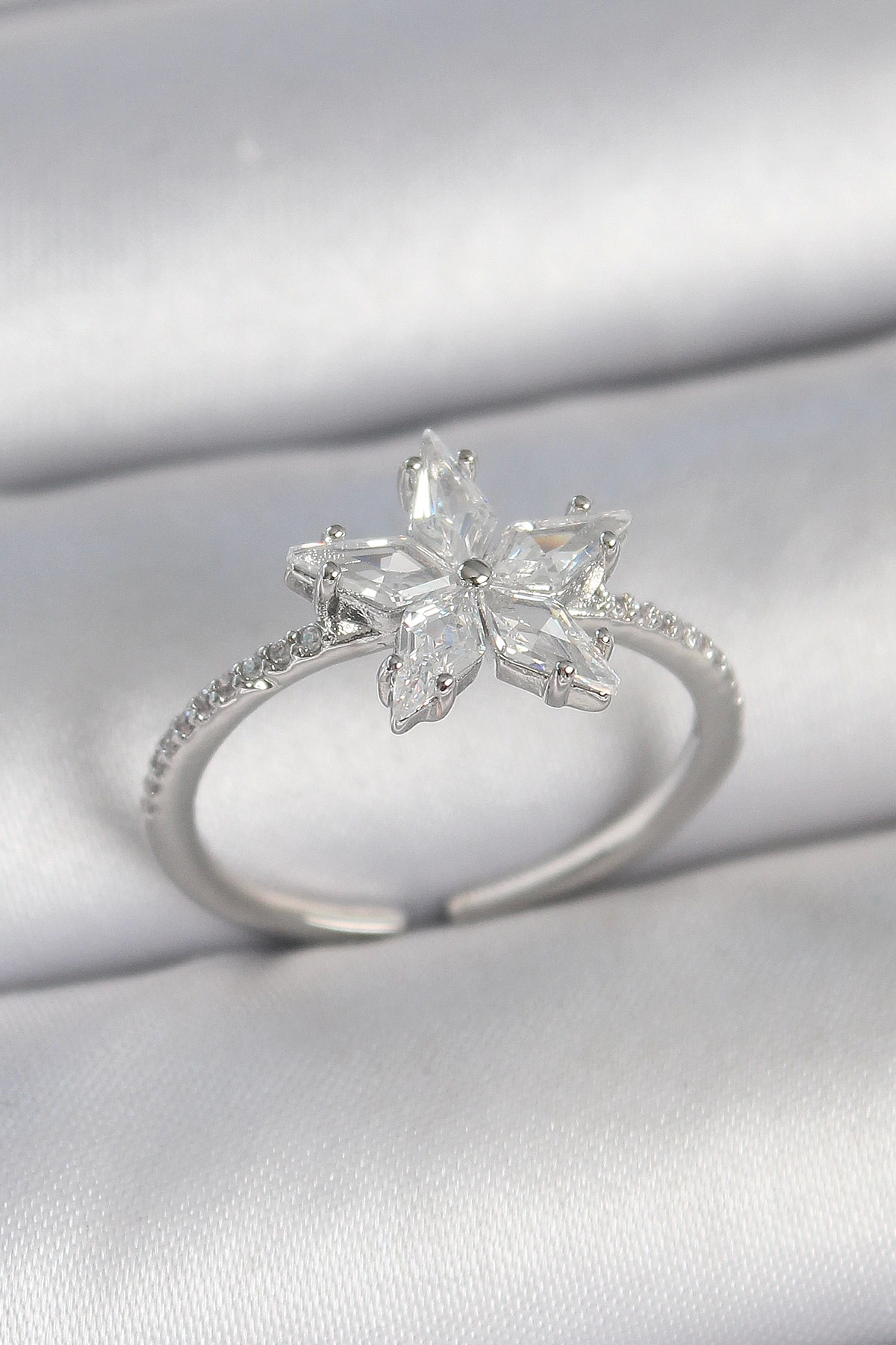 Pirinç Gümüş Renk Zirkon Taşlı Yıldız Model Ayarlanabilir Kadın Yüzük