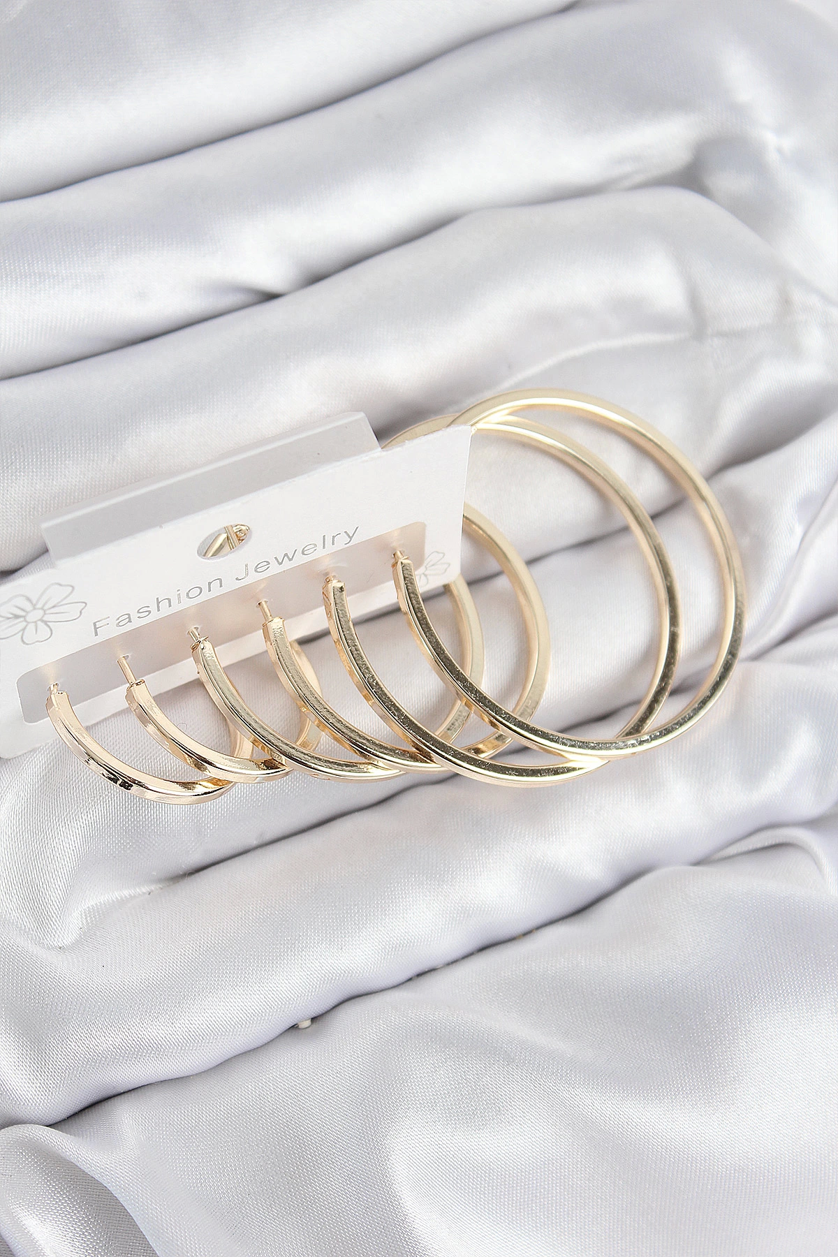 Pirinç Halka Model Gold Renk Kadın Set Küpe