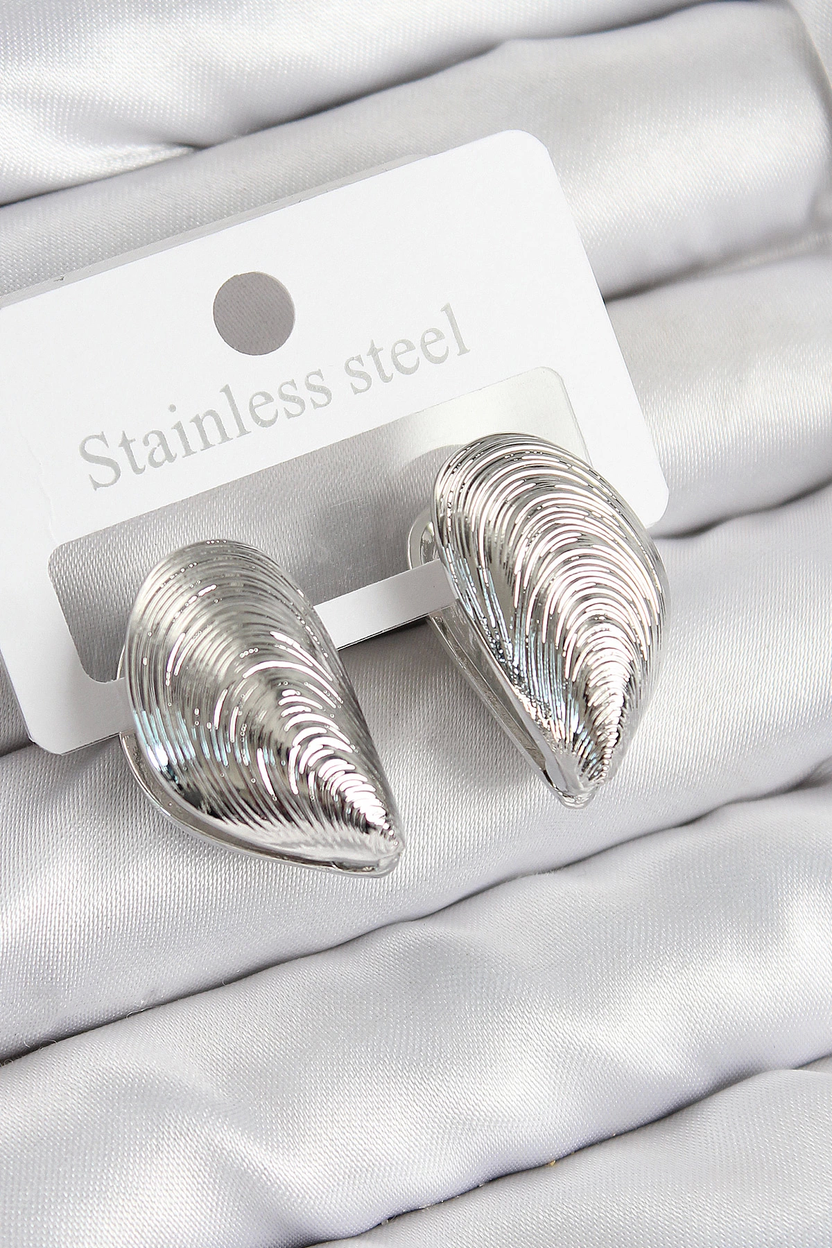 Pirinç İstiridye Model Gümüş Renk Kadın Küpe