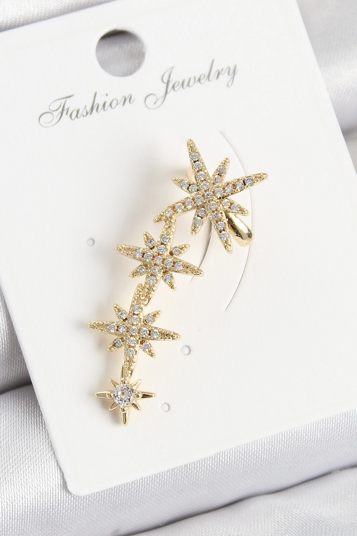 Pirinç Kutup Yıldızı Model Gold Renk Sağ Kıkırdak Küpe