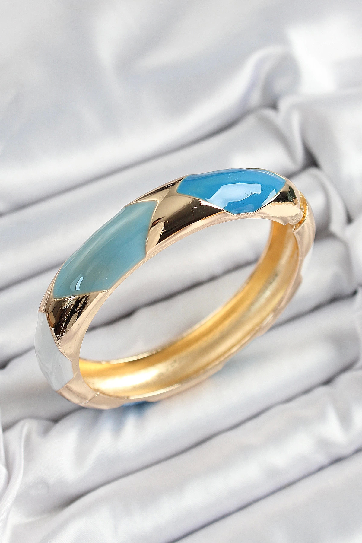 Pirinç Mavi Beyaz Mineli Baklava Model Gold Renk Kadın Kelepçe
