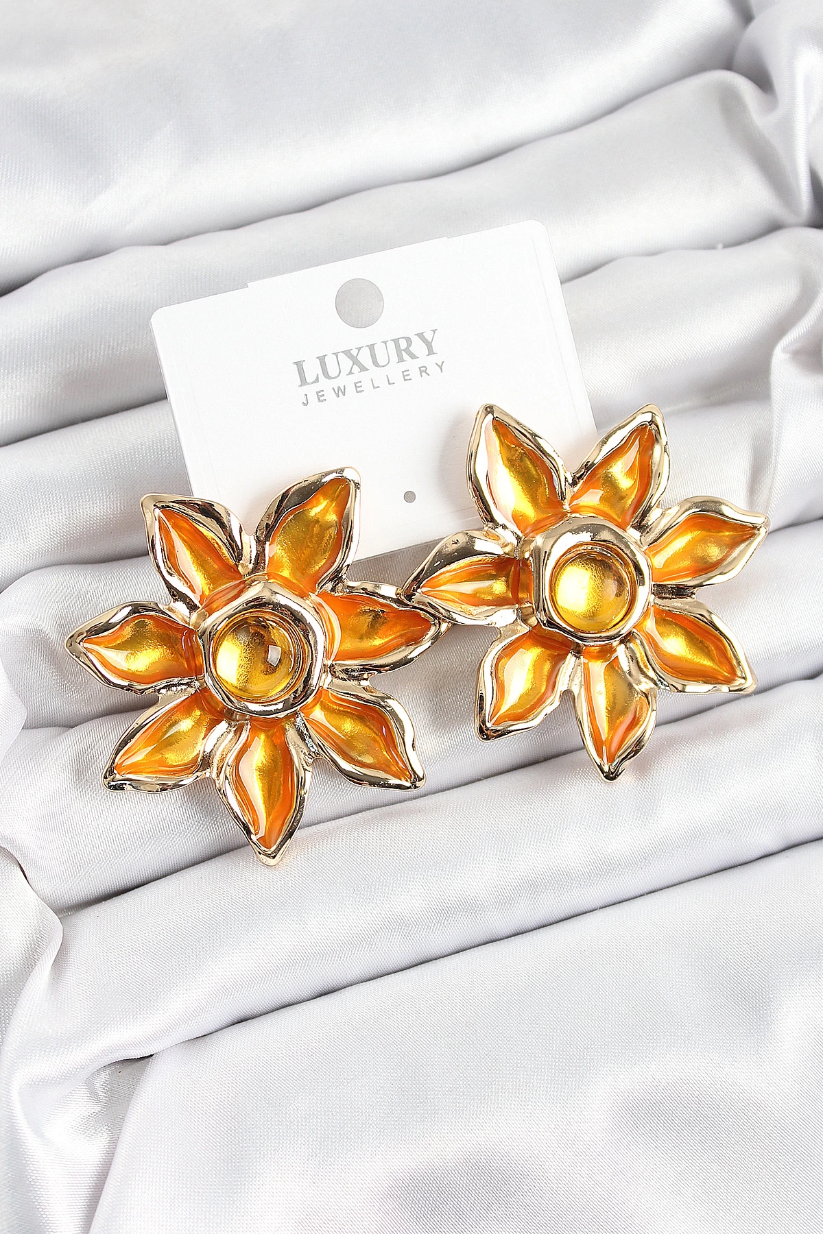 Pirinç Mineli Alevli Çiçek Model Gold Renk Kadın Küpe