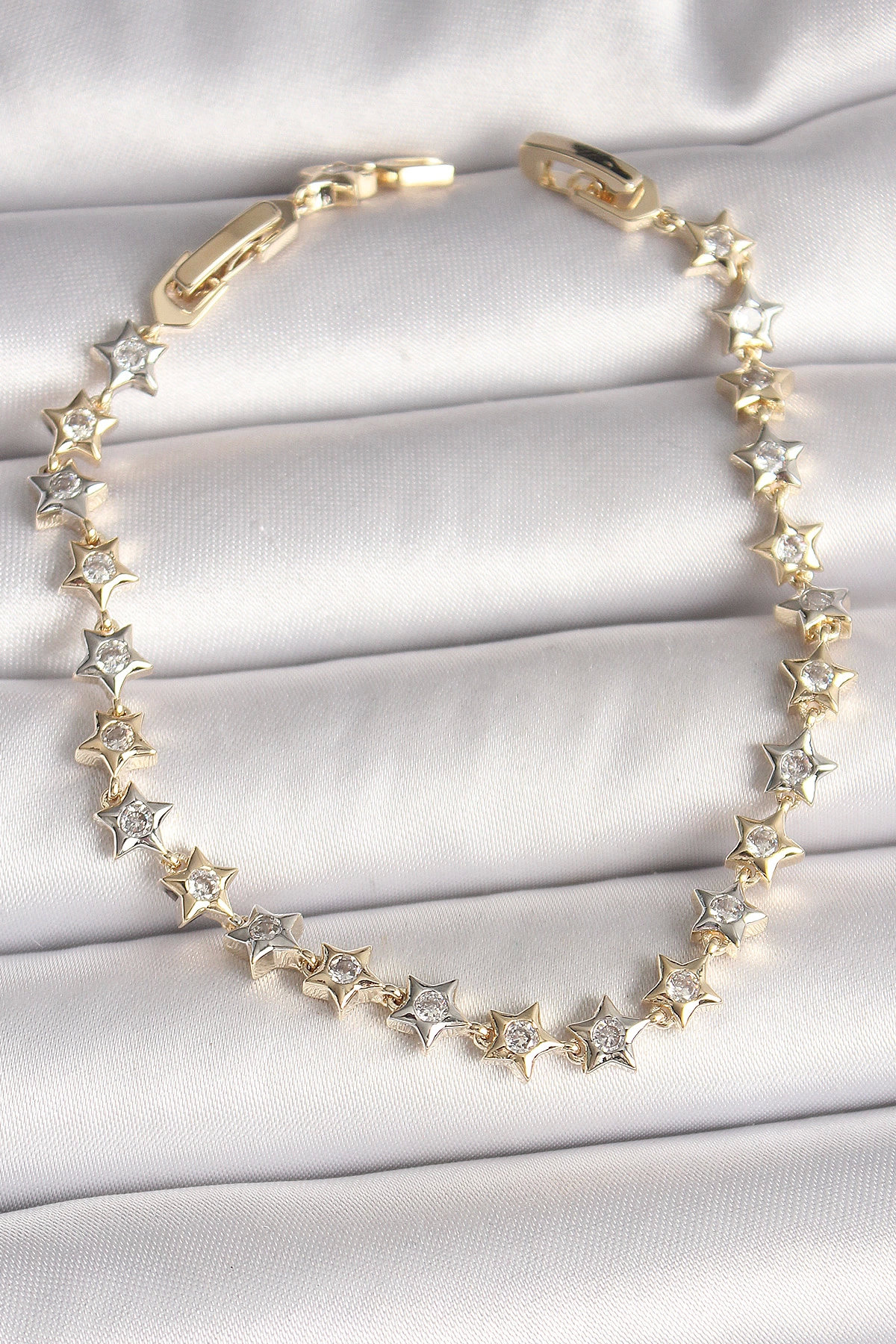 Pirinç Mix Renk Zirkon Taşlı Yıldız Model Vıp Seri Kadın Bileklik
