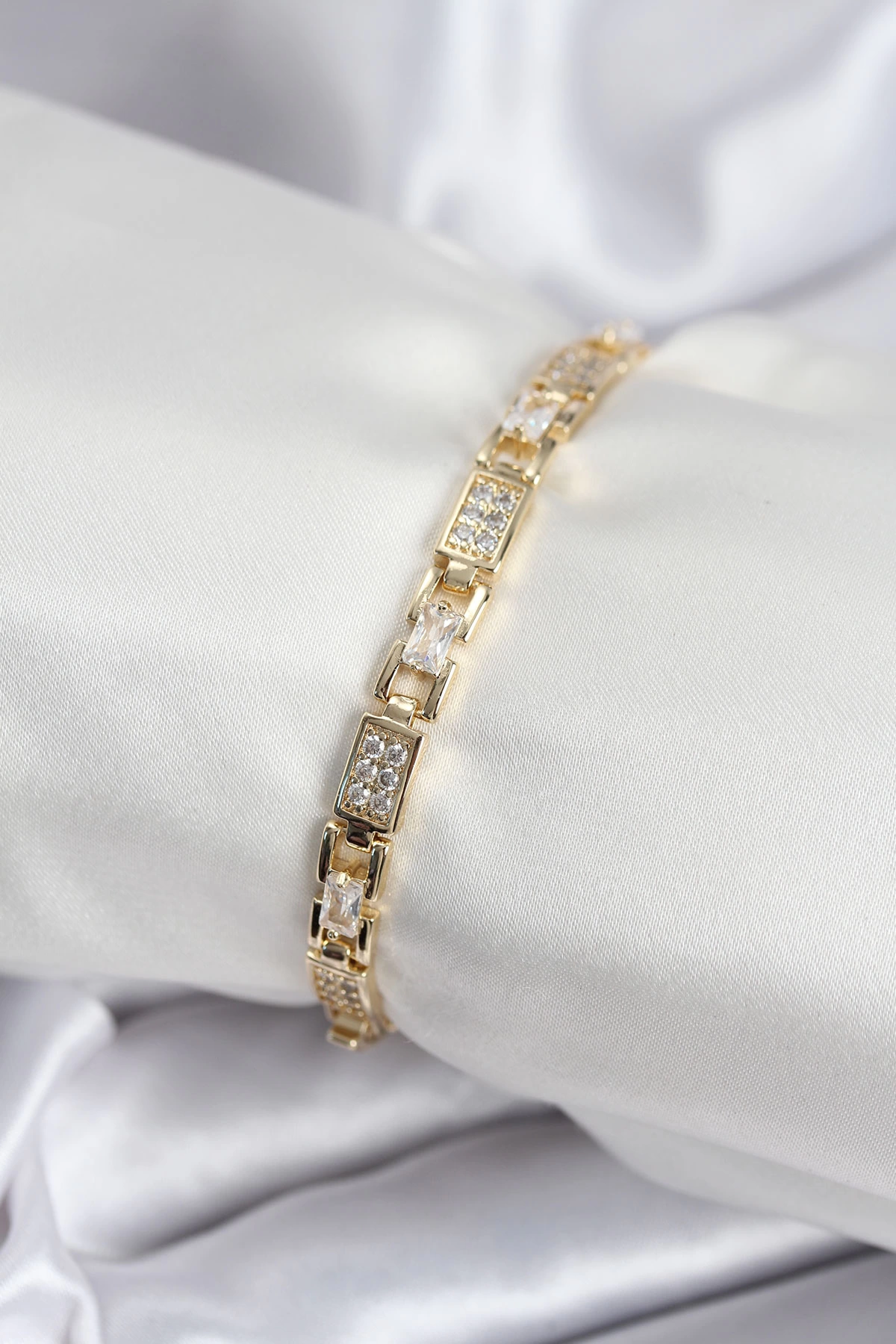 Pirinç Vıp Seri Gold Renk Zirkon Taşlı Model Kadın Bileklik