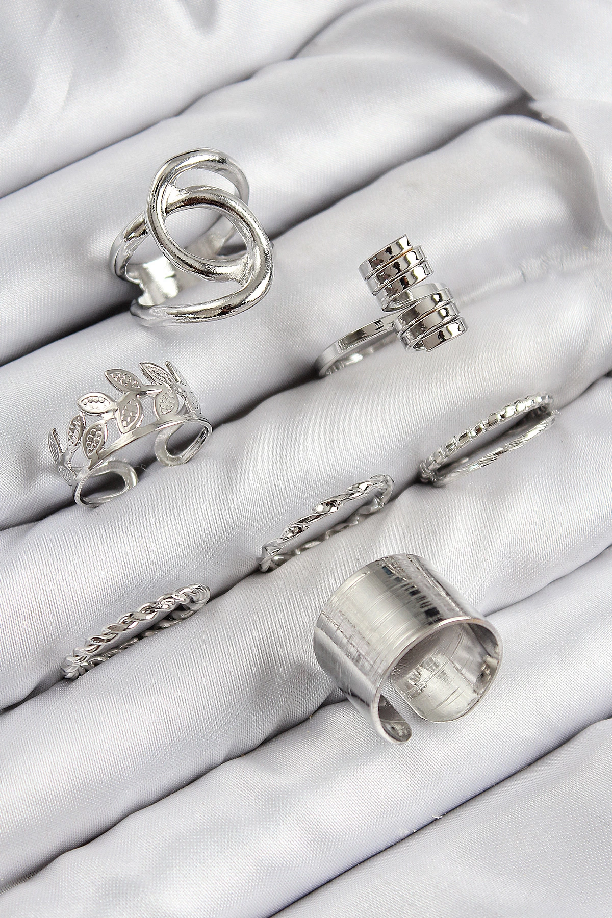Pirinç Yaprak Model Gümüş Renk Kadın Yüzük Kombin Set