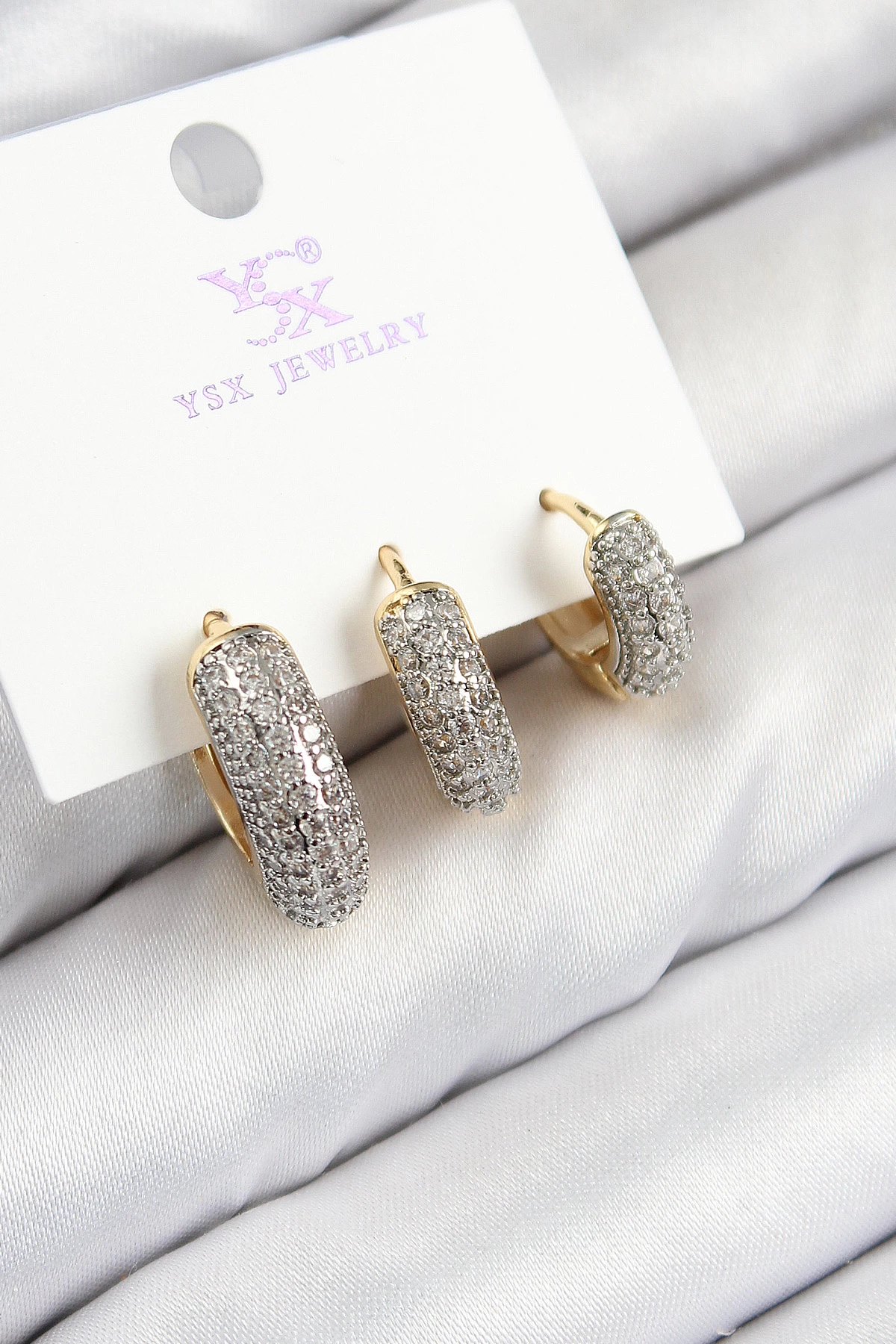 Pirinç Zirkon Taşlı 3'lü Halka Model Gold Ve Gümüş Renk Kadın Küpe
