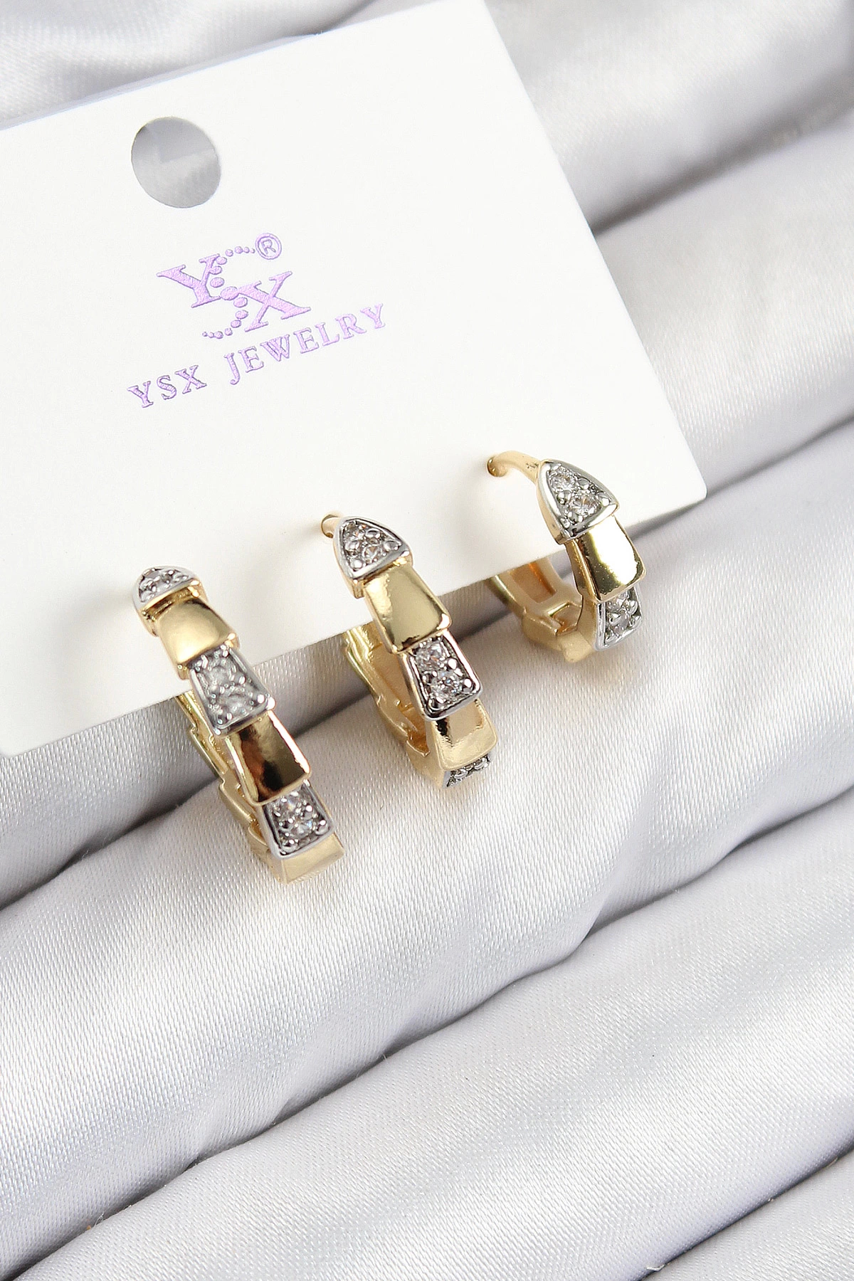 Pirinç Zirkon Taşlı 3'lü Halka Model Gold Ve Gümüş Renk Kadın Küpe
