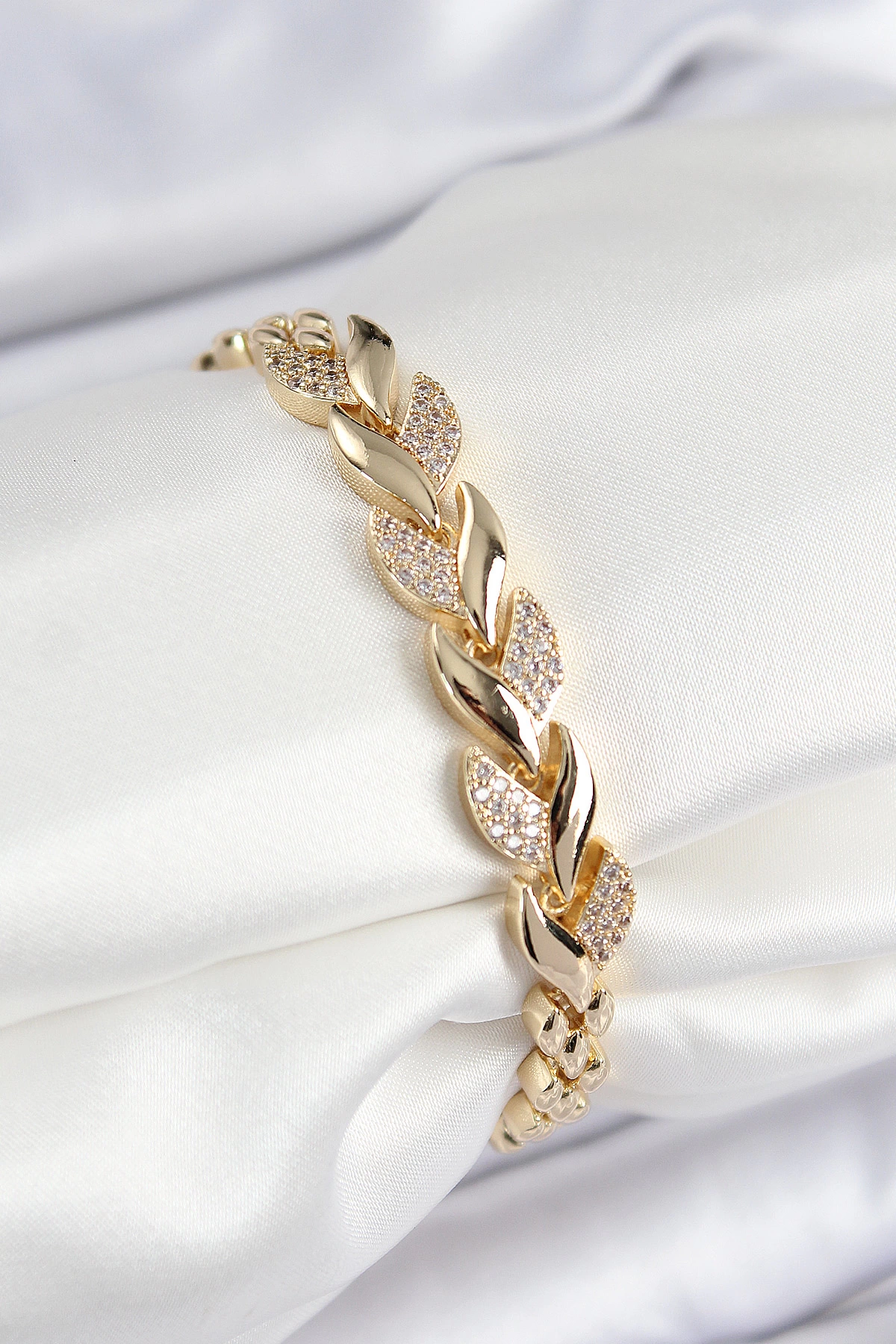 Pirinç Zirkon Taşlı Balık Kuyruğu Model Gold Renk Kadın Bileklik