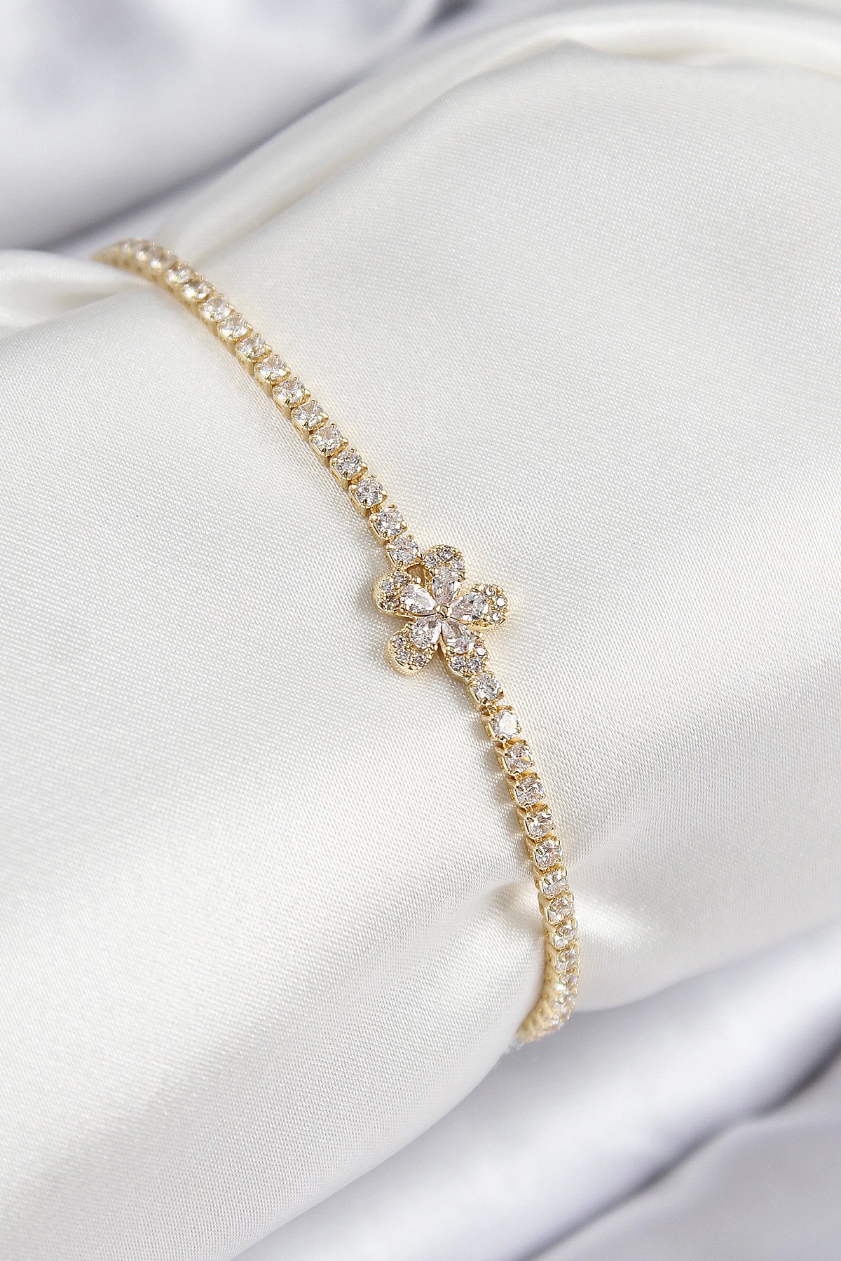 Pirinç Zirkon Taşlı Çiçek Model Gold Renk Kadın Bileklik
