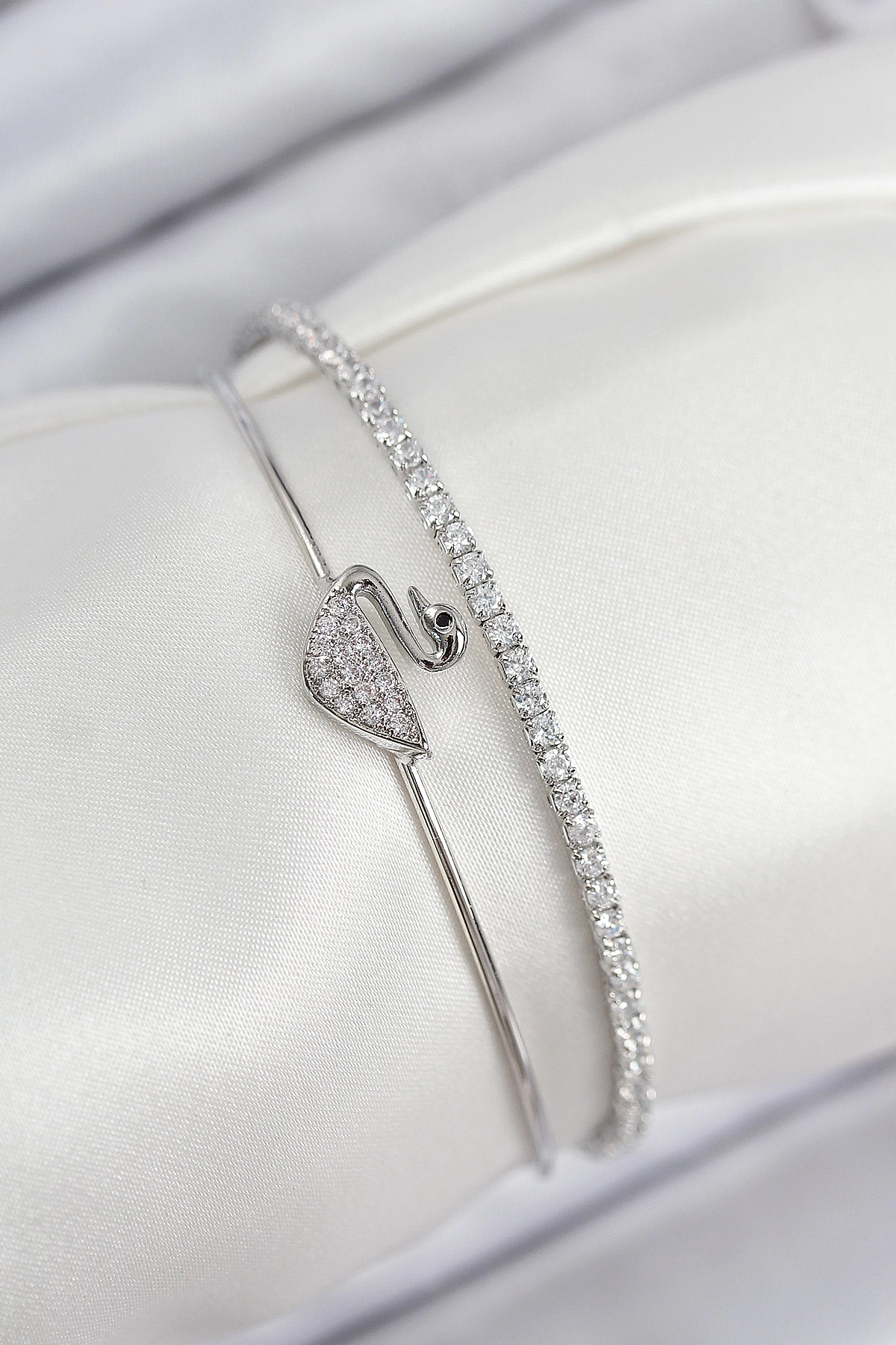 Pirinç Zirkon Taşlı Kuğu Model Gümüş Renk Kadın Bileklik