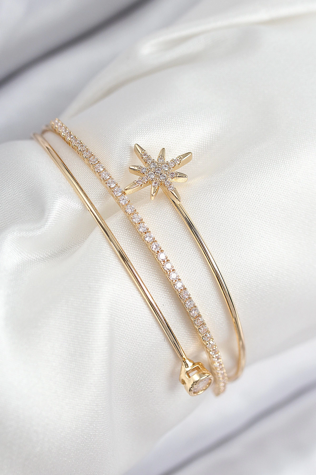 Pirinç Zirkon Taşlı Kutup Yıldızı Model Gold Renk Kadın Bileklik