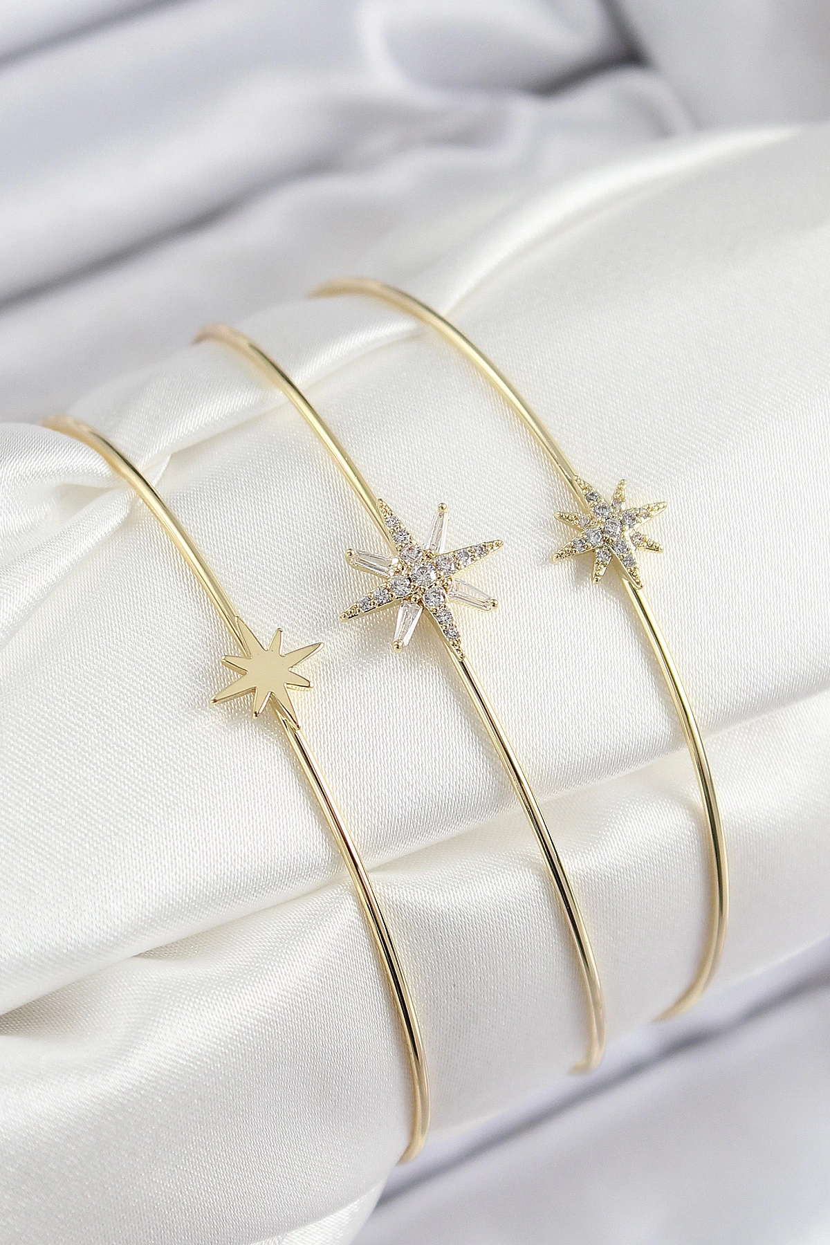 Pirinç Zirkon Taşlı Kutup Yıldızı Model Gold Renk Vip 3'lü Kadın Bileklik