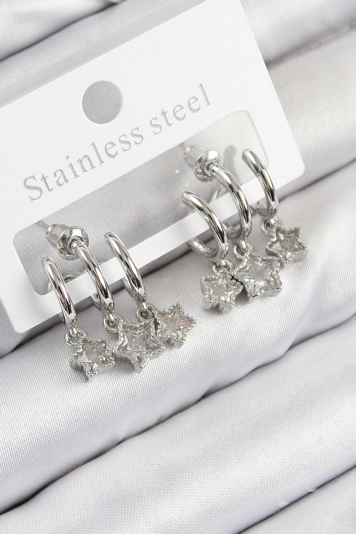 Pirinç Zirkon Taşlı Sallantılı Yıldız Model Gümüş Renk Kadın Küpe