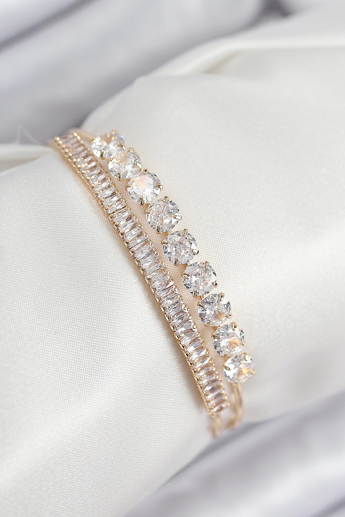 Pirinç Zirkon Taşlı Su Yolu Model Gold Renk Kadın Bileklik
