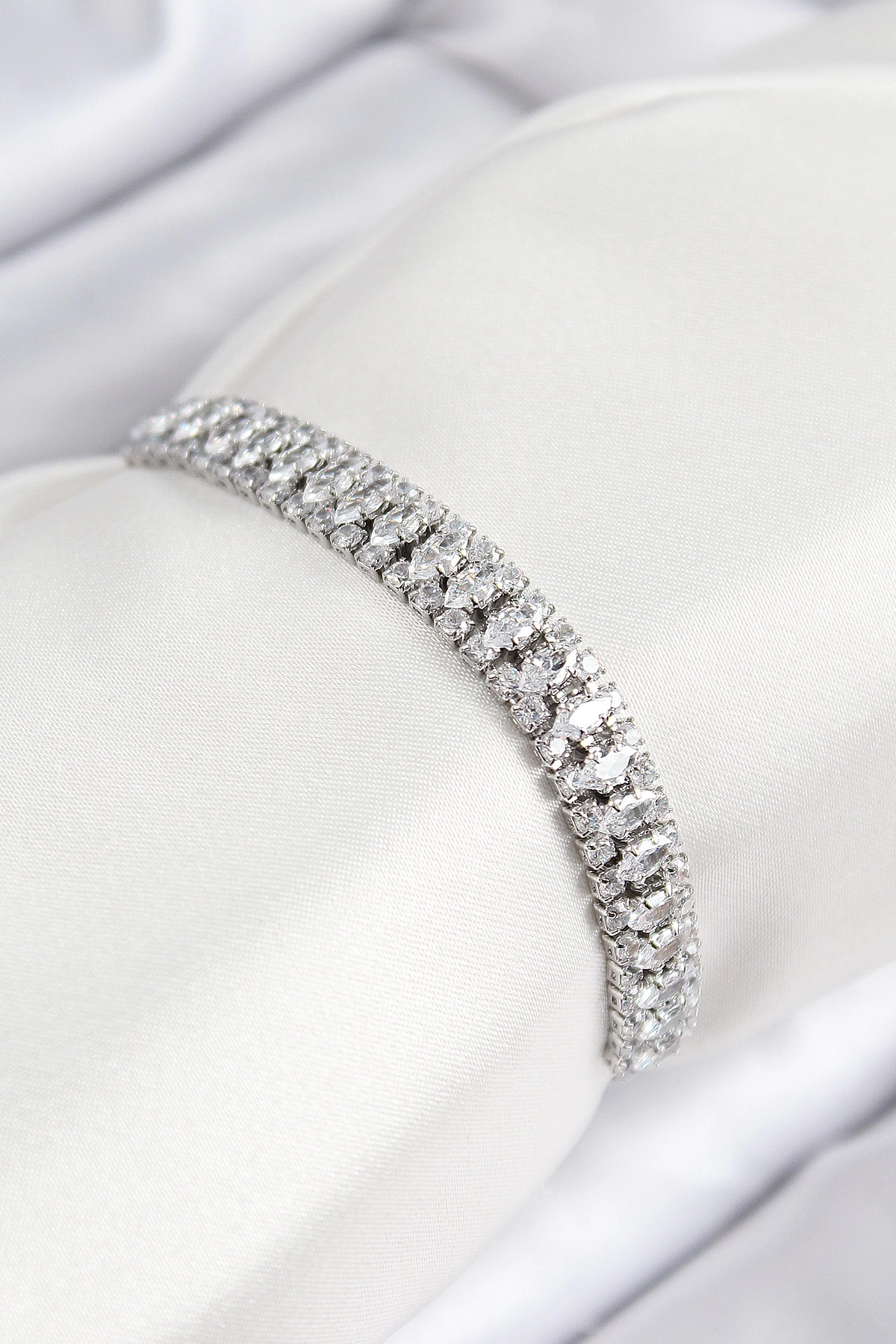 Pirinç Zirkon Taşlı Tennıs Model Gümüş Renk Asansörlü Kadın Bileklik