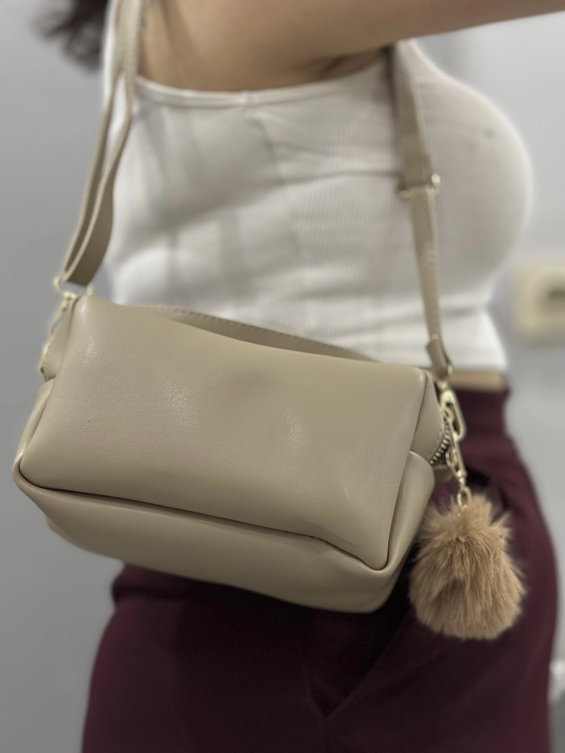 Ponpon Vizon Cilt Çanta