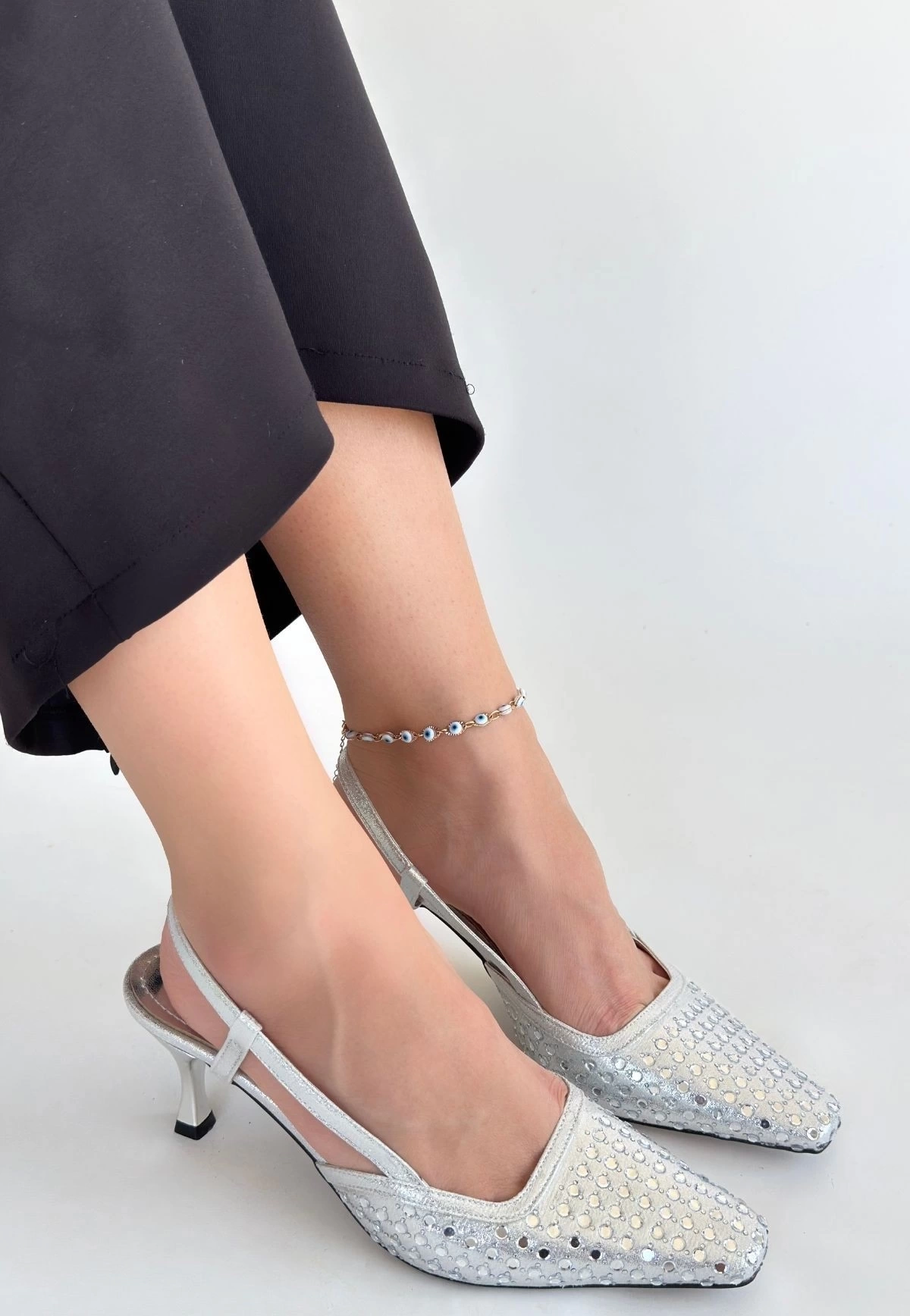 Sione Gümüş Cilt Topuklu Ayakkabı